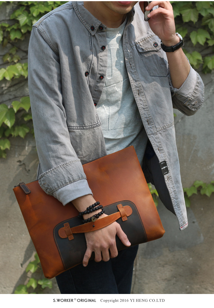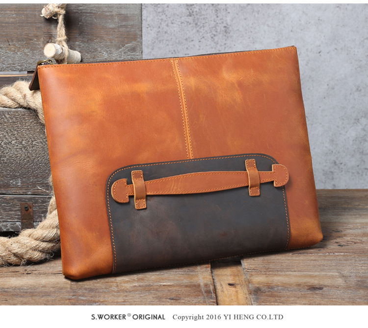 Chiếc túi cầm tay nam này có kiểu dáng đơn giản và phong cách hoài cổ, được làm từ chất da bò tự nhiên bền đẹp. Thiết kế rộng rãi giúp đựng vừa máy tính xách tay, tài liệu và các vật dụng cá nhân khác một cách gọn gàng. Sản phẩm được tạo ra tỉ mỉ bằng tay, đường chỉ chắc chắn. Bạn có thể dùng nó để đi làm, đi gặp đối tác hoặc trong những chuyến công tác ngắn ngày. | Tên sản phẩm: Ví Bóp Cầm Tay Nữ Chất Liệu Da Bò Phục Cổ Cổ Điển - Túi Ví Nữ | Mã sản phẩm: A1842 - Giá: 1.590.000đ | Mã nhà sản xuất: SHDND-G04Hình ảnh sản phẩm