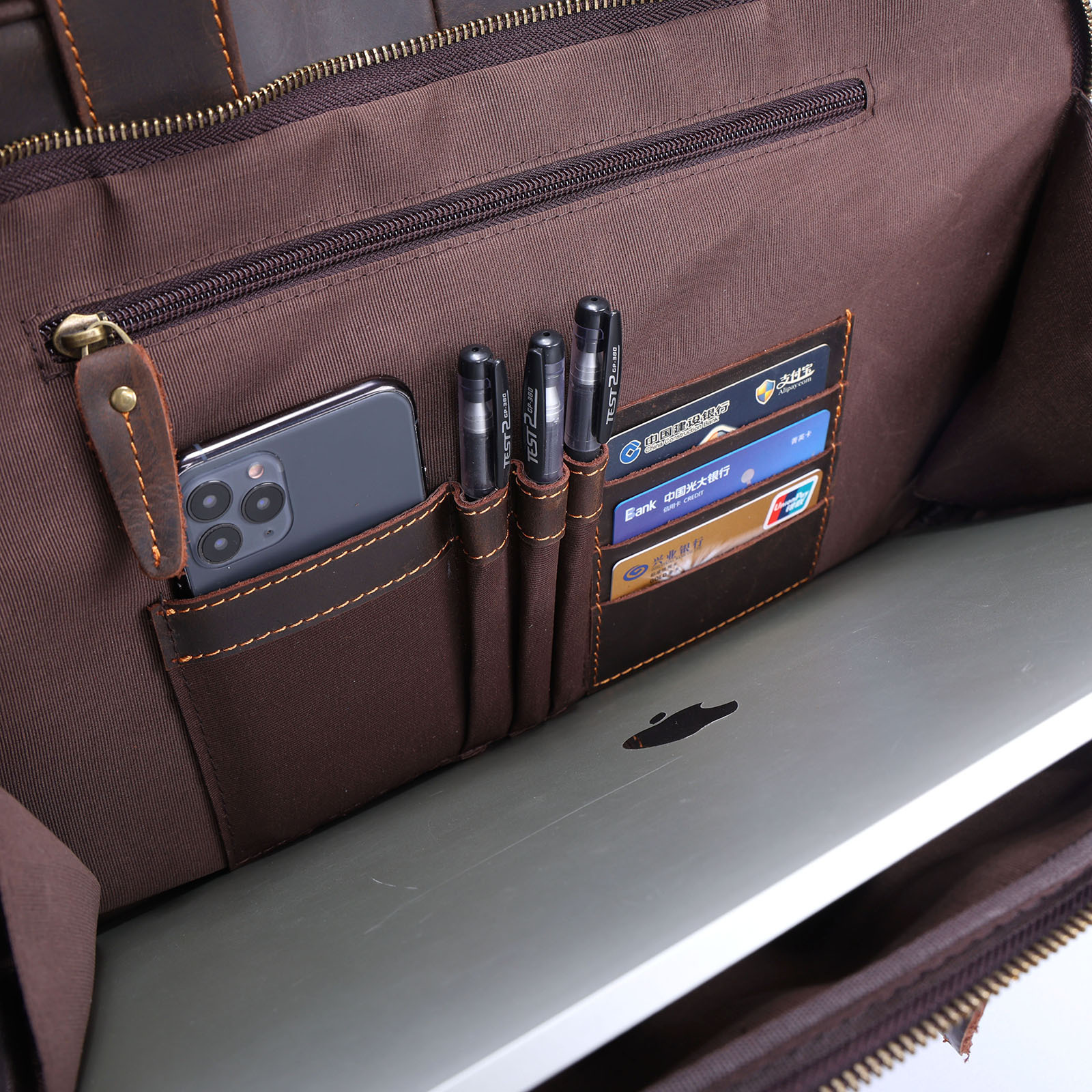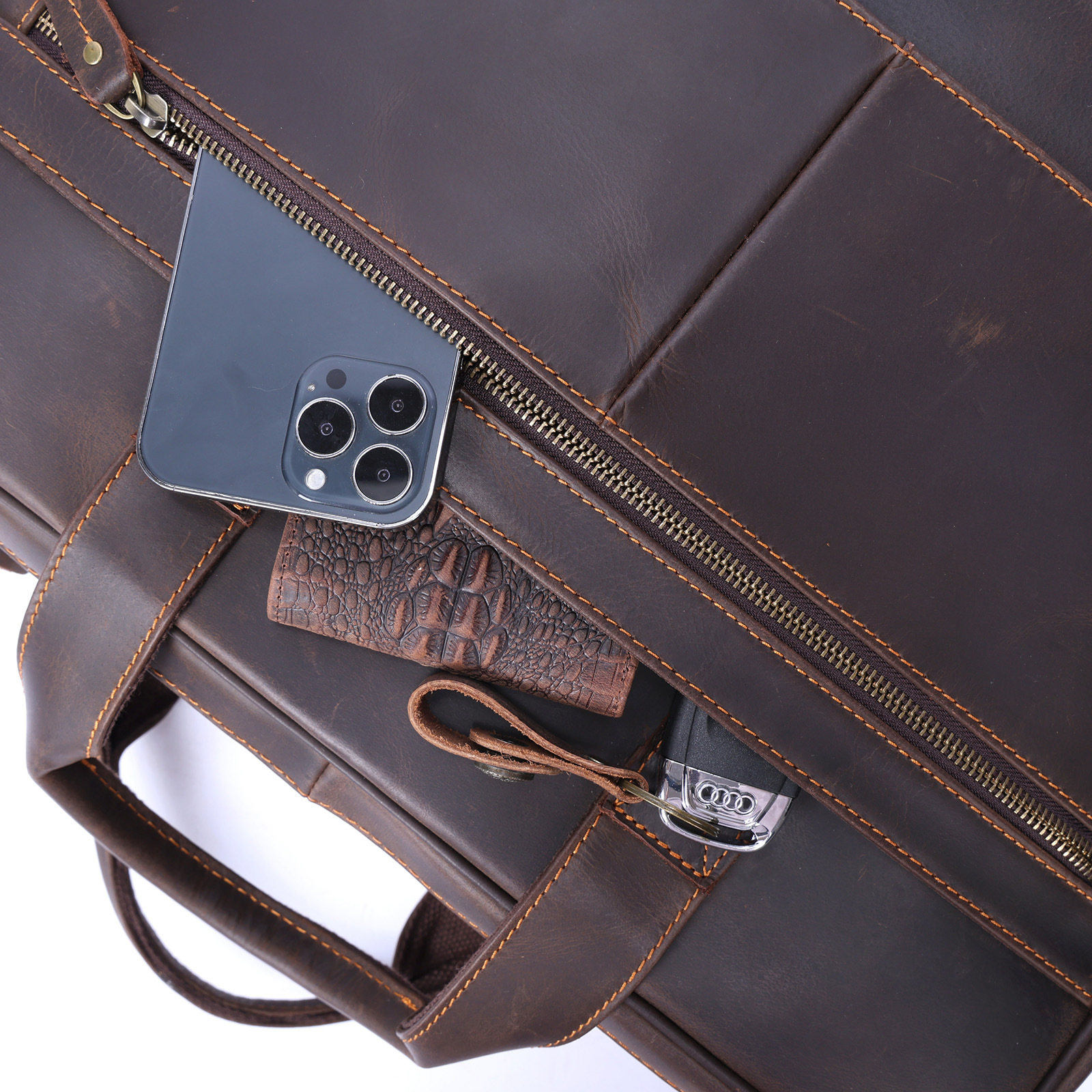 Chiếc cặp công sở này có kích thước rộng rãi, chứa vừa máy tính lên đến 17 inch cùng nhiều vật dụng khác. Chất da bò nguyên miếng tự nhiên tạo nên vẻ ngoài mạnh mẽ và phong cách. Bên trong có nhiều ngăn giúp sắp xếp giấy tờ, phụ kiện gọn gàng. Dây đeo chắc chắn và qu xách tiện lợi cho việc di chuyển. Sản phẩm phù hợp cho các chuyến công tác hoặc sử dụng hằng ngày. | Tên sản phẩm: Túi Xách Nam Chất Liệu Da Bò Túi Đựng Máy Tính - Túi Xách Ví Nam | Mã sản phẩm: A1861 - Giá: 3.560.000đ | Mã nhà sản xuất: SHDND-G06Hình ảnh sản phẩm