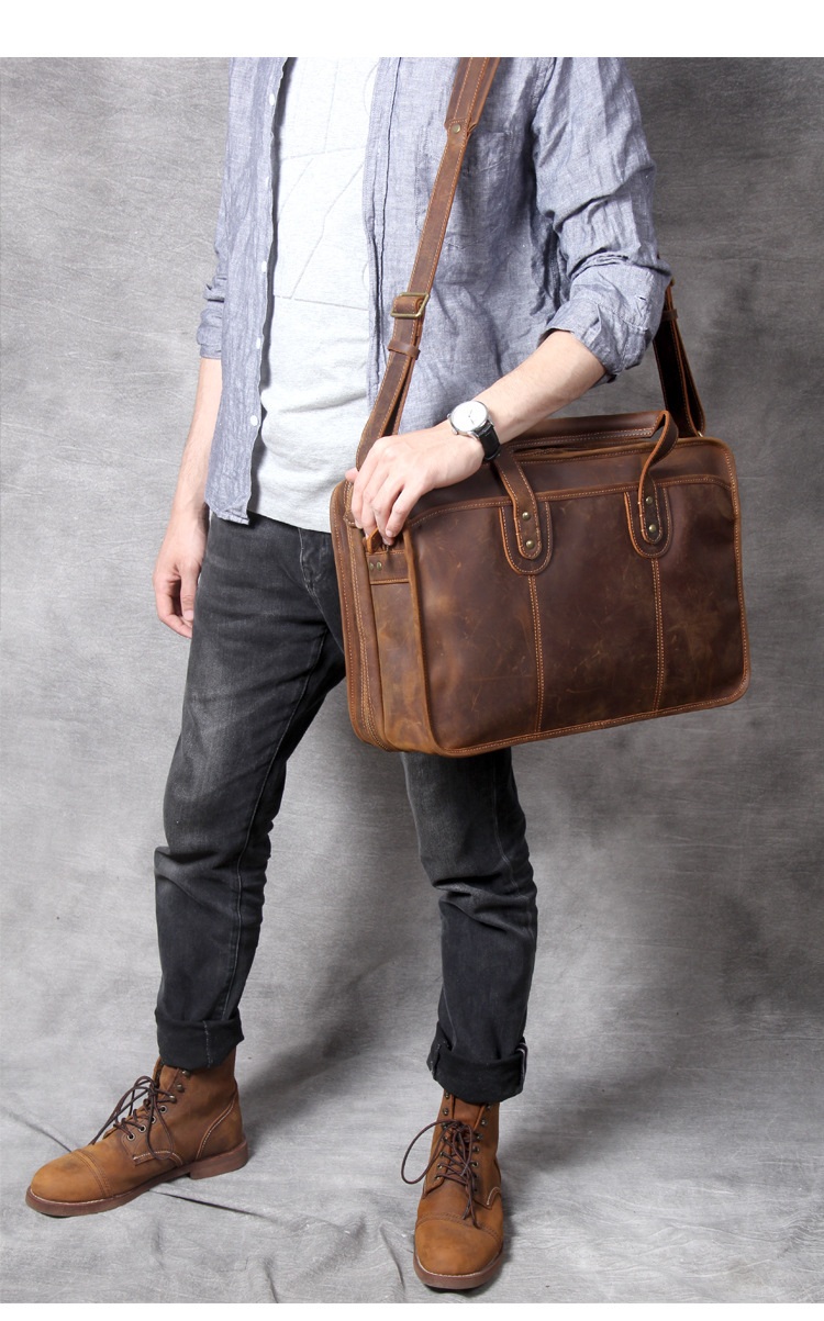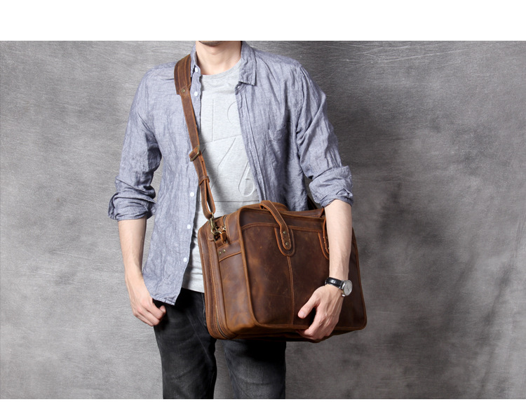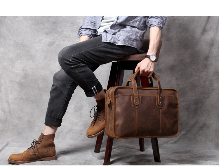 Chiếc túi du lịch này được làm từ chất liệu da bò mềm mại, có vân tự nhiên độc đáo tạo nên vẻ đẹp cổ điển. Kiểu dáng nam tính, phù hợp làm túi đựng máy tính, tài liệu công sở hoặc dùng trong các chuyến đi ngắn ngày. Bên trong có ngăn rộng đựp vừa laptop, cùng các ngăn phụ tiện lợi. Chỉ cần xách theo tay là có thể sử dụng ngay. Sản phẩm được thực hiện bằng phương pháp thủ công tỉ mỉ, phù hợp cho nhu cầu sử dụng hằng ngày. | Tên sản phẩm: Túi Xách Nam Chất Liệu Da Bò Túi Đựng Máy Tính Phục Cổ Cổ Điển - Túi Xách Ví Nam | Mã sản phẩm: A1887 - Giá: 4.070.000đ | Mã nhà sản xuất: SHDND-G06Hình ảnh sản phẩm