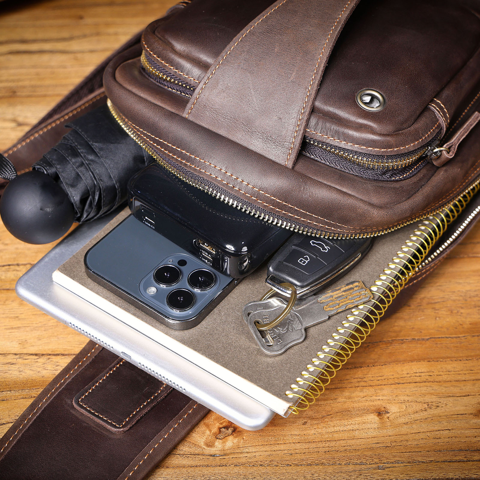 Chiếc túi đeo chéo này được làm thủ công từ chất liệu da thật lấy từ lớp da bên ngoài, mang đến độ bền và vẻ đẹp tự nhiên theo thời gian. Kiểu dáng phong cách cổ điển, kích thước rộng rãi giúp bạn đựng vừa nhiều vật dụng cá nhân một cách gọn gàng. Sản phẩm thích hợp cho các chuyến đi chơi, dạo phố hay khi lái xe. Bạn có thể đeo túi một bên v hoặc đeo chéo người một cách thoải mái và tiện lợi. | Tên sản phẩm: Túi Xách Nam Chất Liệu Da Bò Phục Cổ Cổ Điển - Túi Xách Ví Nam | Mã sản phẩm: A1920 - Giá: 1.780.000đ | Mã nhà sản xuất: SHDND-G05Hình ảnh sản phẩm