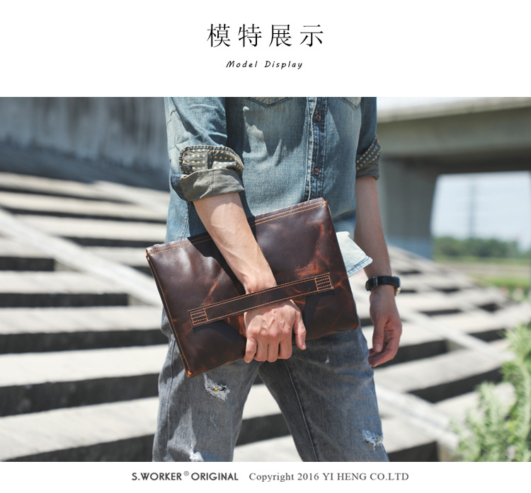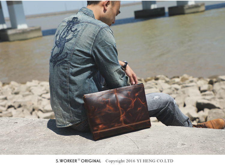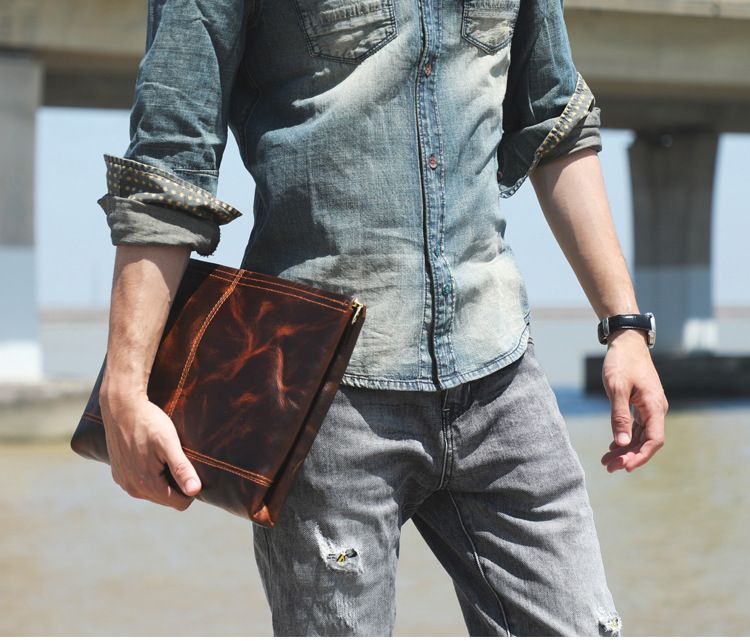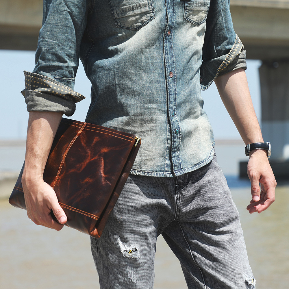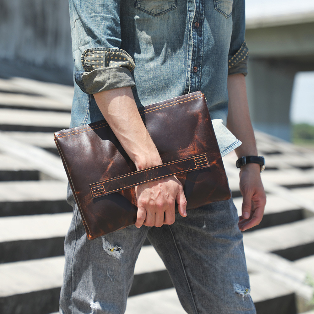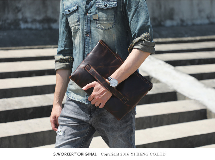 Chiếc túi nam này mang phong cách hoài cổ, được làm từ chất liệu da bò tự nhiên. Bề mặt da có lớp hoàn thiện dạng sáp tạo vẻ đẹp lịch lãm theo thời gian. Kiểu dáng phong bì thanh lịch, có thể cầm tay hoặc mang dưới cánh tay rất tiện lợi. Sản phẩm thích hợp dùng trong các dịp gặp mặt, dạo phố. Khi sử dụng, chỉ cần cho các vật dụng cá nhân vào và gập mép lại là xong. | Tên sản phẩm: Ví Bóp Cầm Tay Nam Chất Liệu Da Bò Phục Cổ Cổ Điển - Túi Xách Ví Nam | Mã sản phẩm: A1928 - Giá: 1.680.000đ | Mã nhà sản xuất: SHDND-G05Hình ảnh sản phẩm