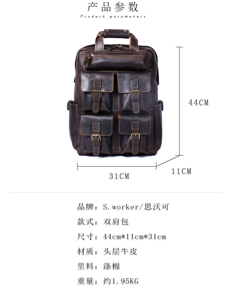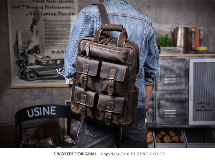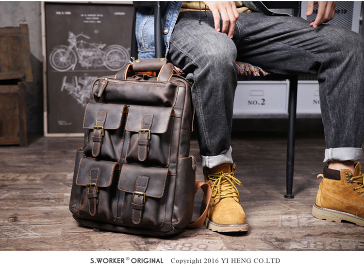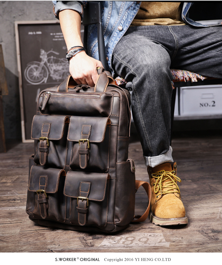 Ba lô da thật dành cho nam, kiểu dáng cổ điển với vẻ ngoài mạnh mẽ, phù hợp cho nhiều dịp sử dụng. Sản phẩm được làm từ lớp da bò tự nhiên, có khả năng chịu lực tốt và theo thời gian sẽ lên màu đẹp. Ngăn chính rộng rãi đựng vừa máy tính, sách vở và các vật dụng cá nhân. Bạn có thể đeo hàng ngày đi làm, đi học hoặc khi du lịch. Sử dụng sản phẩm một cách bình thường, tránh để nơi ẩm ướt. | Tên sản phẩm: Túi Đeo Vai Nam Chất Liệu Da Bò Túi Đựng Máy Tính Phục Cổ Cổ Điển - Túi Xách Ví Nam | Mã sản phẩm: A1940 - Giá: 3.700.000đ | Mã nhà sản xuất: SHDND-G06Hình ảnh sản phẩm