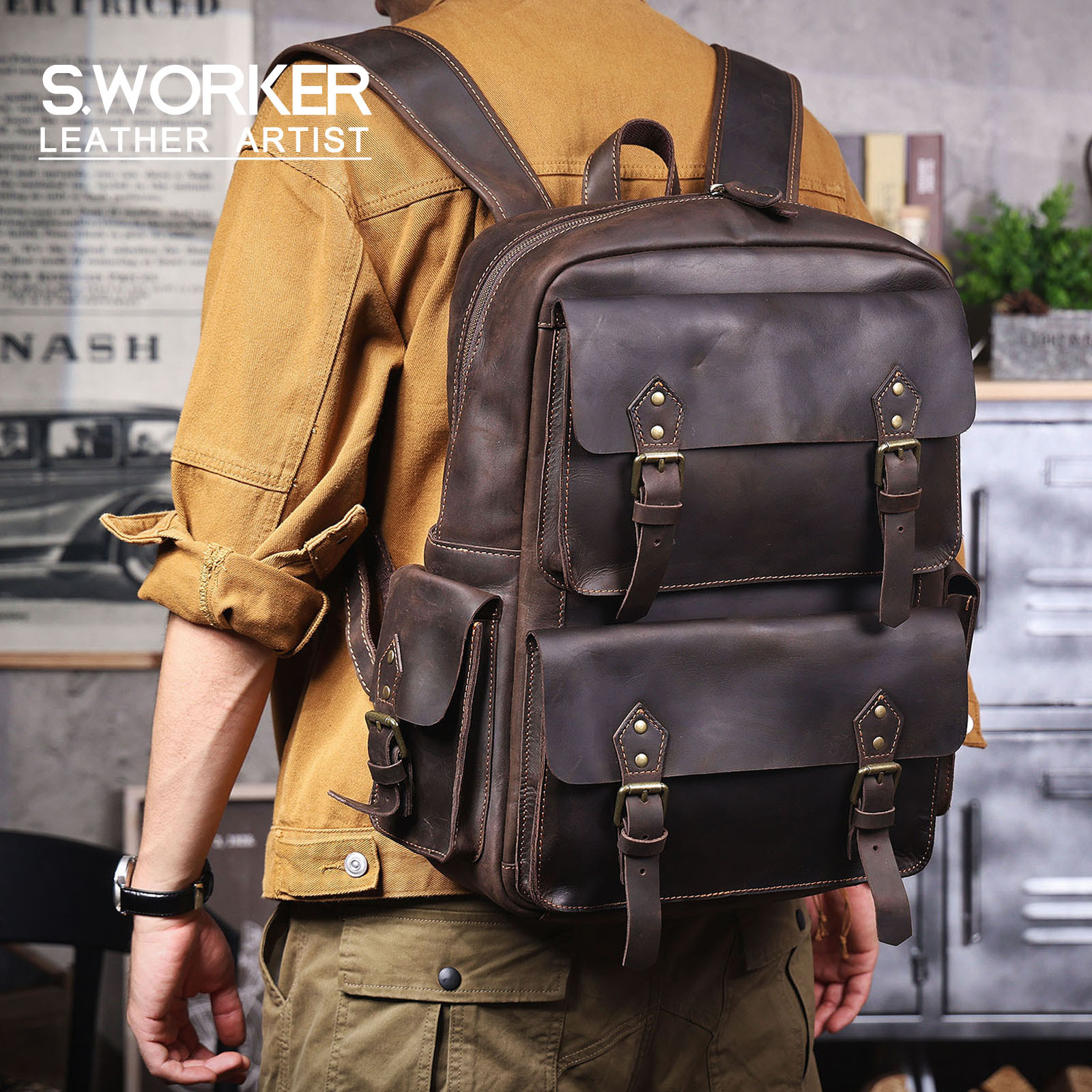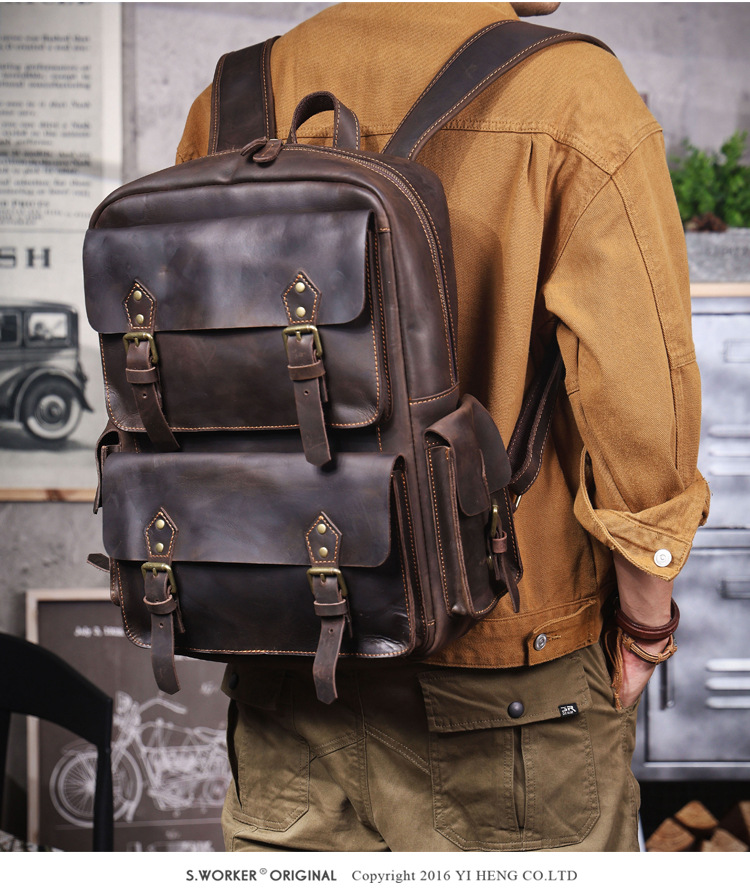 Ba lô được làm hoàn toàn từ chất da bò tự nhiên, có bề mặt tạo hiệu ứng vân mềm mại rất độc đáo. Kiểu dáng thiết kế mang phong cách hoài cổ, kết hợp cùng kỹ thuật gia công thủ công tỉ mỉ. Ngăn chứa rộng rãi bên trong dễ dàng đựng vừa máy tính xách tay và các vật dụng cá nhân cho những chuyến đi xa. Sản phẩm có qu đeo chắc chắn, giúp mang lại cảm giác thoải mái khi sử dụng trong thời gian dài. | Tên sản phẩm: Túi Đeo Vai Nam Chất Liệu Da Bò Túi Đựng Máy Tính Phục Cổ Cổ Điển - Túi Xách Ví Nam | Mã sản phẩm: A1943 - Giá: 3.240.000đ | Mã nhà sản xuất: SHDND-G06Hình ảnh sản phẩm