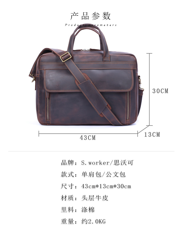 Chiếc cặp da dành cho nam giới, được làm từ loại da bò mềm mại và bền chắc. Kiểu dáng cổ điển kết hợp cùng phong cách thiết kế hiện đại, tạo nên vẻ lịch lãm. Sản phẩm có ngăn rộng rãi, thuận tiện đựng máy tính xách tay, tài liệu và các vật dụng cá nhân khác. Có thể đeo trên v hoặc xách tay một cách thoải mái. Sử dụng hàng ngày và lau chùi nhẹ nhàng bằng vải khô để giữ vẻ đẹp cho sản phẩm. | Tên sản phẩm: Túi Xách Nam Chất Liệu Da Bò Túi Đựng Máy Tính Phục Cổ Cổ Điển - Túi Xách Ví Nam | Mã sản phẩm: A1961 - Giá: 3.500.000đ | Mã nhà sản xuất: SHDND-G06Hình ảnh sản phẩm