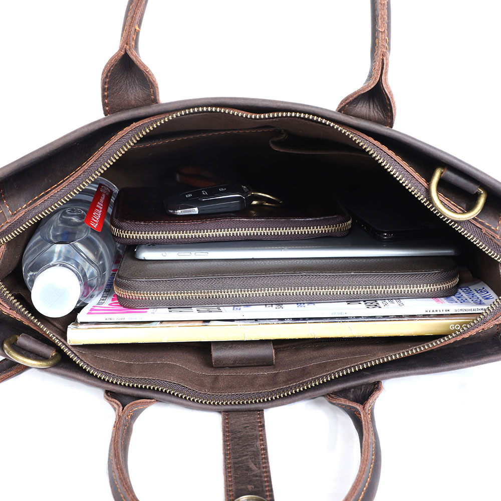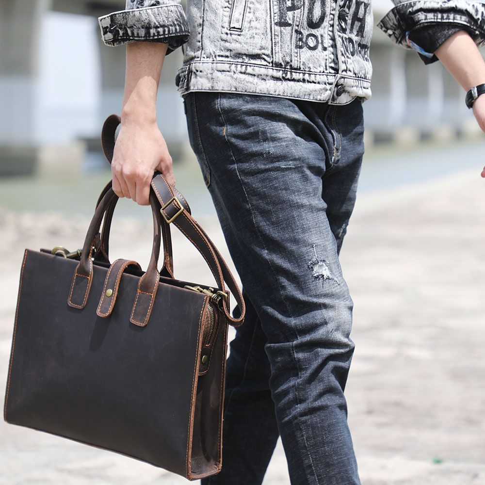Chiếc cặp da thật này mang đến vẻ đẹp cổ điển, phù hợp cho công việc hằng ngày. Chất liệu da bò tự nhiên bền đẹp, càng dùng càng lên nước. Ngăn rộng rãi đựng vừa máy tính xách tay, tài liệu cùng các vật dụng cá nhân. Bạn có thể đeo trên v một cách thoải mái hoặc xách bằng tay một cách lịch sự. Sản phẩm kết hợp tiện ích và phong cách cho những chuyến đi làm hoặc công tác. | Tên sản phẩm: Túi Xách Nam Chất Liệu Da Bò Túi Đựng Máy Tính Phục Cổ Cổ Điển - Túi Xách Ví Nam | Mã sản phẩm: A1986 - Giá: 2.550.000đ | Mã nhà sản xuất: SHDND-G06Hình ảnh sản phẩm