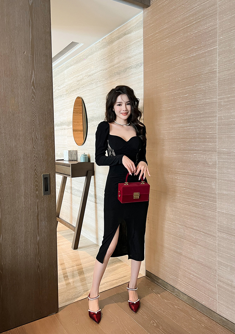Chiếc đầm ôm dáng tôn lên những đường nét cơ thể một cách gợi cảm. Thiết kế cổ thấp và phần thân trên ôm sát tạo điểm nhấn. Điểm đặc biệt là phần xẻ tà phá cách ở vạt áo, giúp người mặc thêm phần năng động và quyến rũ. Kiểu dáng mang phong cách Pháp hiện đại, phù hợp cho những buổi tiệc chiều hoặc hẹn hò. Cách sử dụng đơn giản, chỉ cần mặc vào và kéo khóa phía sau là hoàn thiện phong cách. | Tên sản phẩm: Váy Đầm Liền Thân Nữ Dáng Ôm Hàng Mùa Xuân Thu Đông - Thời Trang Nữ | Mã sản phẩm: a2031 - Giá: 1.060.000đ | Mã nhà sản xuất: CHDG-G03Hình ảnh sản phẩm