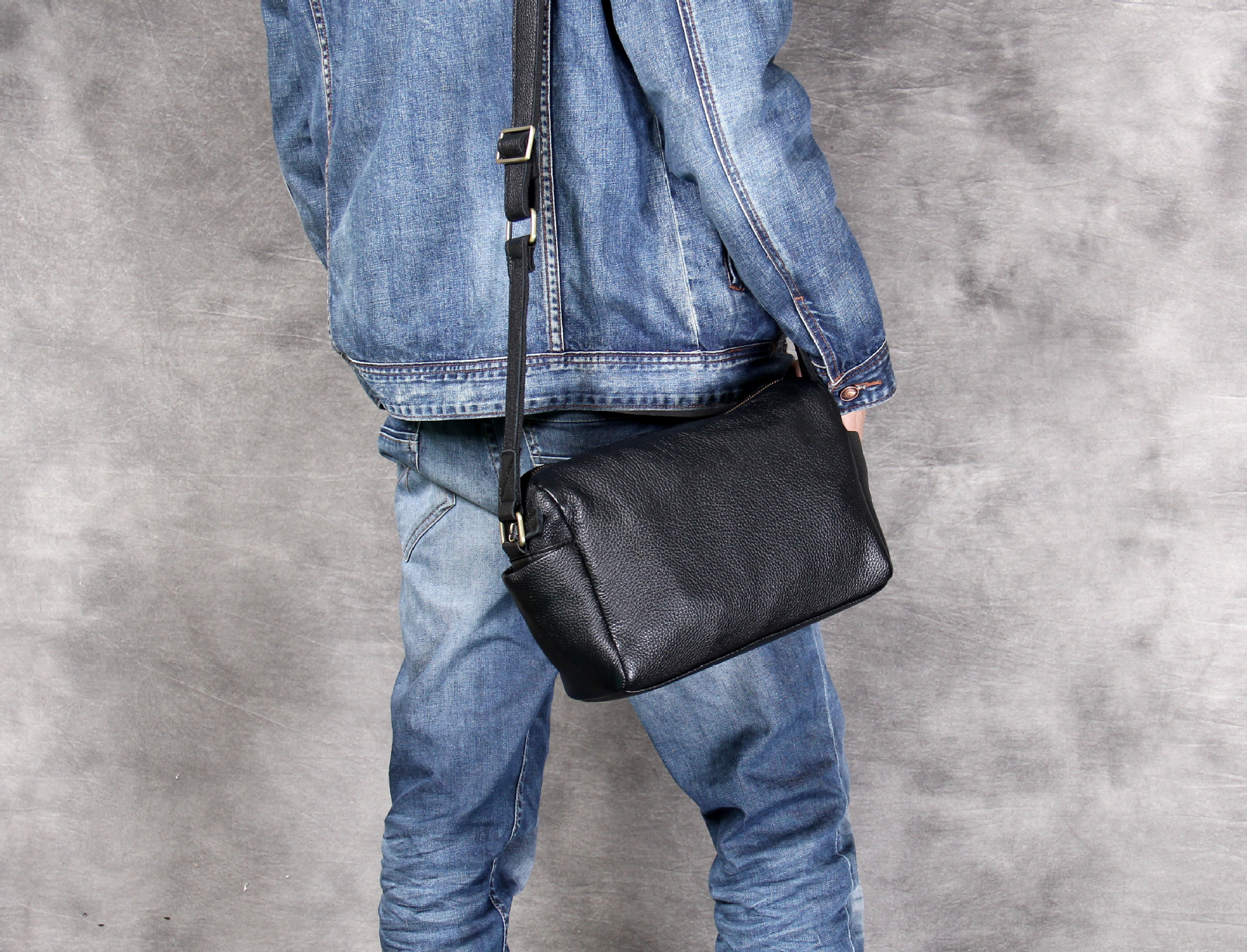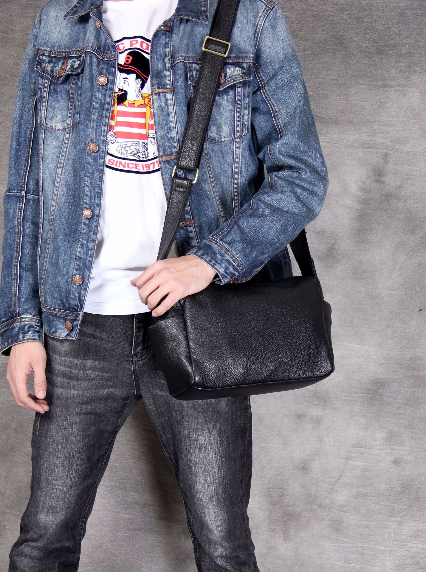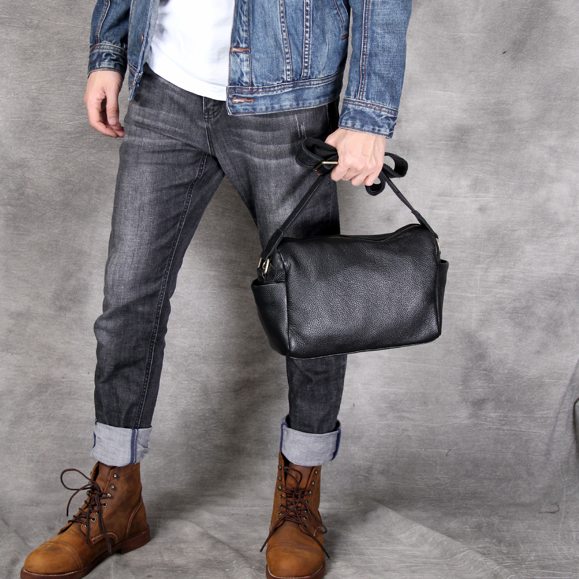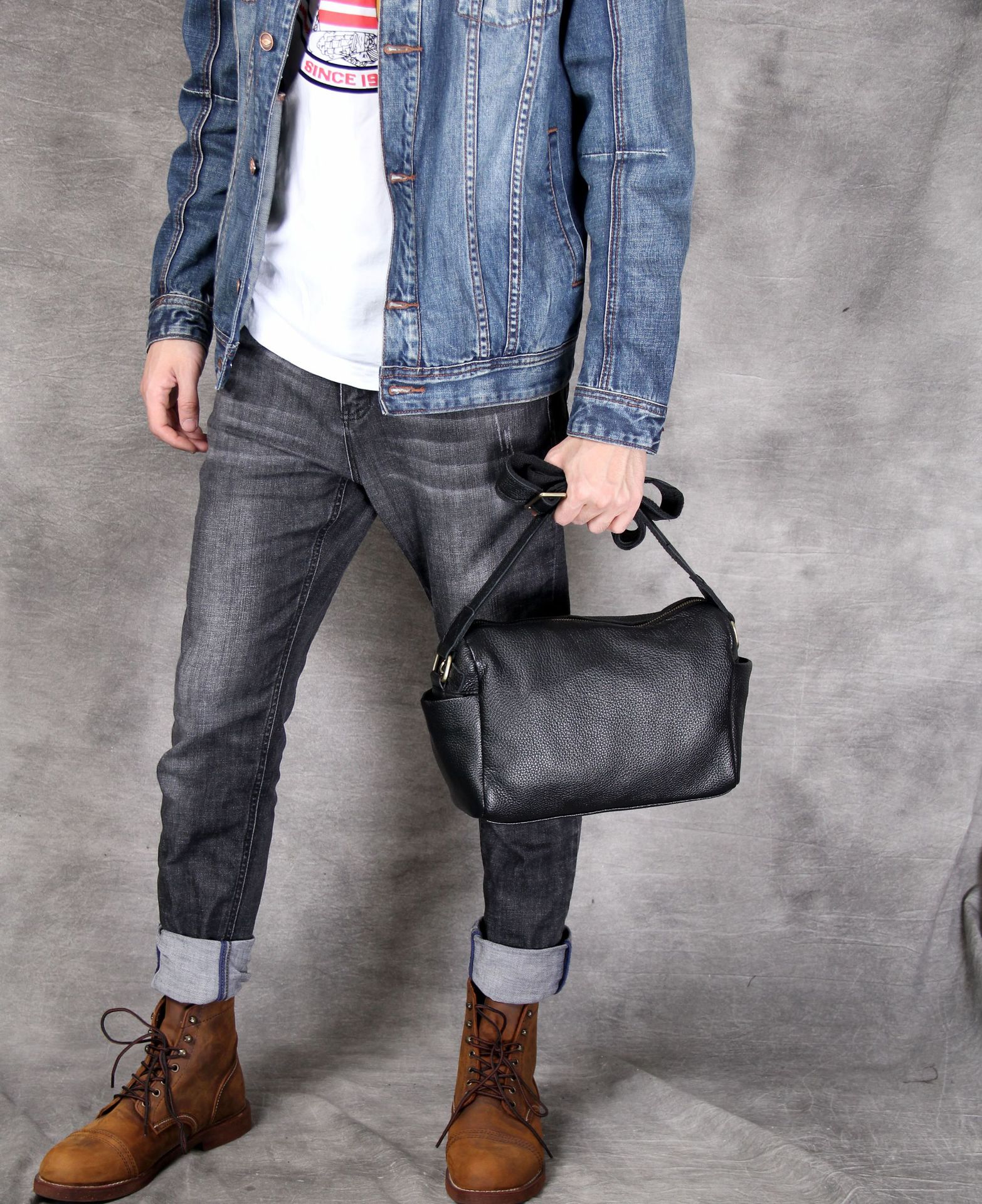 Chiếc túi đeo chéo dành cho nam, được làm hoàn toàn từ chất liệu da bò mềm mại và bền bỉ. Kiểu dáng hình trụ độc đáo, phong cách đơn giản nhưng không kém phần nổi bật. Thiết kế một qu đeo linh hoạt, có thể đeo vắt v hoặc mang chéo người một cách thoải mái. Sản phẩm được tạo ra bởi bàn tay khéo léo của thợ thủ công. Rất phù hợp để sử dụng hằng ngày, đi làm hay khi dạo phố. Cách dùng đơn giản, chỉ cần cho đồ dùng cá nhân vào và khoác lên v. | Tên sản phẩm: Túi Xách Nam Chất Liệu Da Bò - Túi Xách Ví Nam | Mã sản phẩm: A2043 - Giá: 1.680.000đ | Mã nhà sản xuất: SHDND-G05Hình ảnh sản phẩm