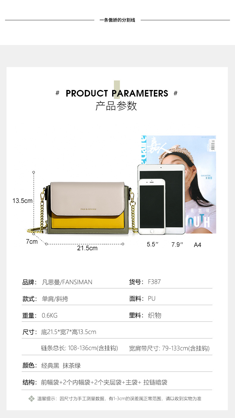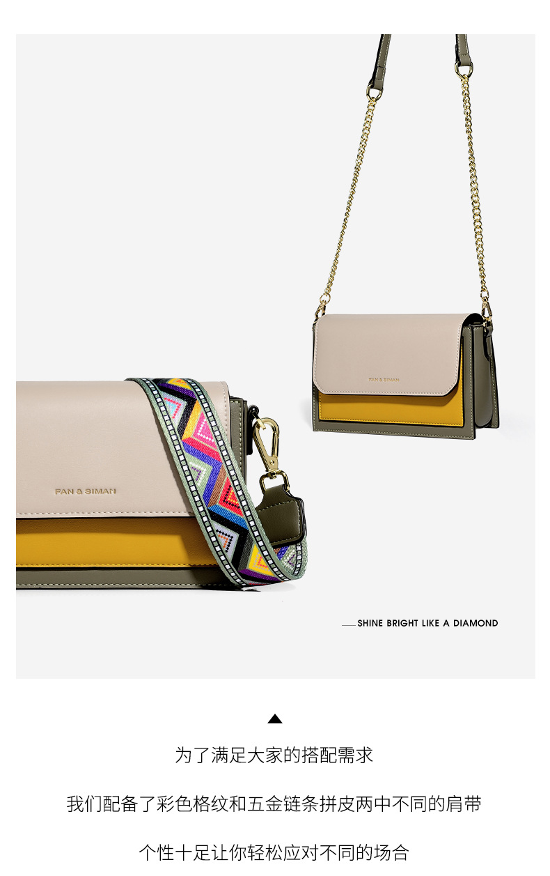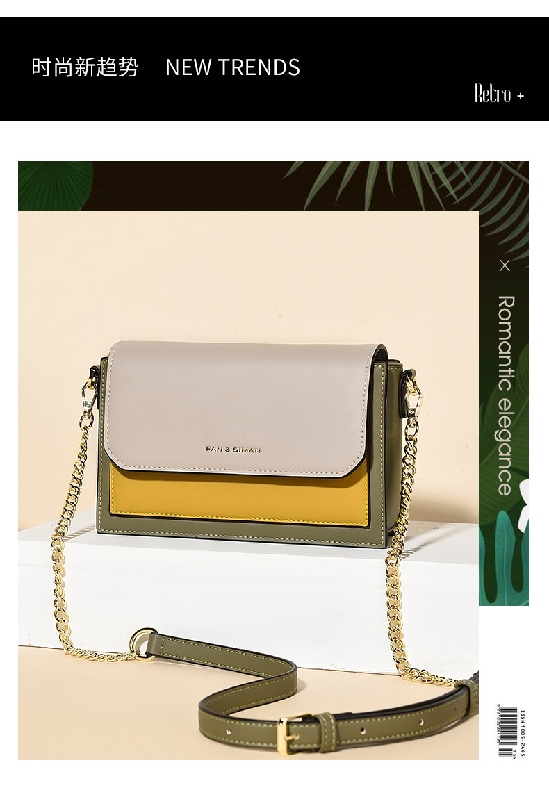 Túi xách mới dành cho nữ, thiết kế đeo chéo hoặc đeo v linh hoạt. Sản phẩm có dây đeo rộng bản và dây xích đi kèm, tạo nhiều cách phối đồ khác nhau. Điểm nhấn nổi bật là sự kết hợp màu sắc tương phản trên cùng một chiếc túi, mang đến vẻ ngoài trẻ trung, năng động. Kiểu dáng nhỏ gọn, phù hợp cho những buổi đi chơi, dạo phố hay đi làm hàng ngày. Có thể dễ dàng điều chỉnh độ dài dây đeo cho vừa vặn. | Tên sản phẩm: Túi Đeo Vai Nữ - Túi Ví Nữ | Mã sản phẩm: A2066 - Giá: 770.000đ | Mã nhà sản xuất: BADTH-G02Hình ảnh sản phẩm