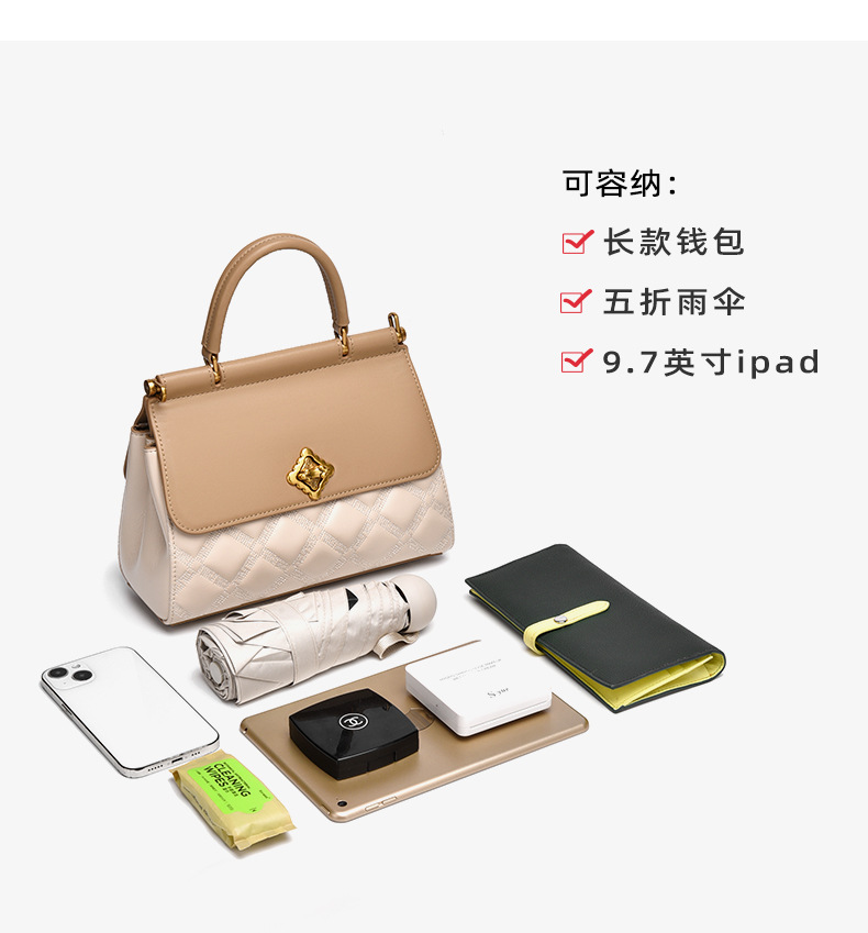 Túi xách tay nữ thiết kế hình vuông với khóa cài ấn tượng. Dáng túi thanh lịch, dễ dàng phối hợp cùng nhiều trang phục khác nhau. Sản phẩm có sức chứa lớn, thuận tiện cho việc mang theo các vật dụng cá nhân cần thiết. Bạn có thể sử dụng như túi đeo tay, khoác v hoặc mang chéo một cách linh hoạt. Kiểu dáng mới, phù hợp để sử dụng hàng ngày hoặc trong nhiều dịp khác nhau. | Tên sản phẩm: Túi Xách Nữ - Túi Ví Nữ | Mã sản phẩm: A2094 - Giá: 870.000đ | Mã nhà sản xuất: BADTH-G03Hình ảnh sản phẩm