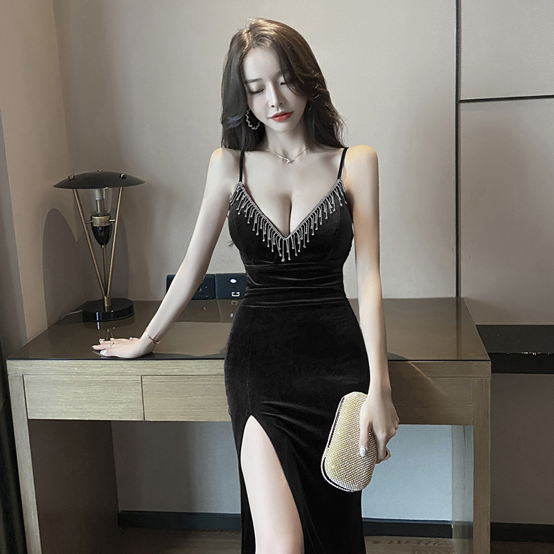 Chiếc váy dài dáng suông với thiết kế cổ khoét sâu và hai dây mảnh m, tôn lên vẻ nữ tính. Chất vải nhung mềm mại mang đến cảm giác dễ chịu. Điểm nhấn phía sau là phần lưng được khoét tinh tế, cùng phần tà xẻ nhẹ tạo nên sự uyển chuyển khi di chuyển. Sản phẩm phù hợp cho những buổi tiệc tối hoặc sự kiện. Mặc kèm với áo khoác mỏng hoặc phụ kiện để tạo điểm nhấn riêng. | Tên sản phẩm: Áo Hai Dây Nữ Dáng Ôm Trễ Ngực Hai Dây Hở Vai - Thời Trang Nữ | Mã sản phẩm: A2144 - Giá: 1.090.000đ | Mã nhà sản xuất: DODGA-G03Hình ảnh sản phẩm