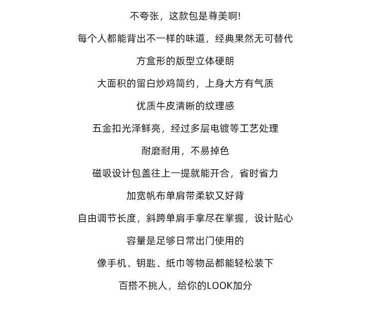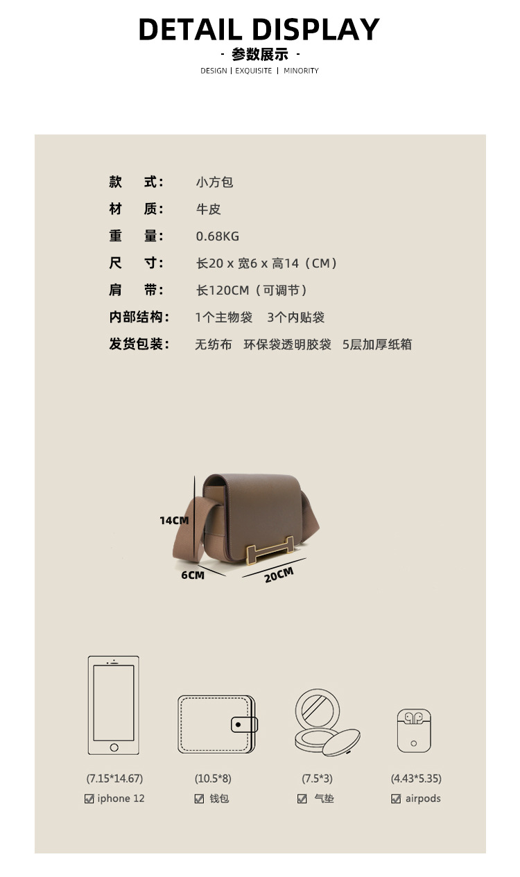 Chiếc túi xách thiết kế hình hộp vuông vức, mang phong cách thời trang đến từ phương Tây. Sản phẩm được làm từ chất liệu da thật, có qu đeo v rộng giúp phân tán lực, mang lại cảm giác thoải mái khi đeo. Kiểu dáng nhỏ gọn, dễ dàng phối hợp với nhiều trang phục khác nhau. Bạn có thể đeo chéo người hoặc khoác v một cách linh hoạt, rất tiện lợi cho những hoạt động thường ngày hay khi di chuyển. | Tên sản phẩm: Túi Xách Nữ Chất Liệu Da Bò Phong Cách Âu Mỹ - Túi Ví Nữ | Mã sản phẩm: A2242 - Giá: 1.780.000đ | Mã nhà sản xuất: GUDEA-G05Hình ảnh sản phẩm
