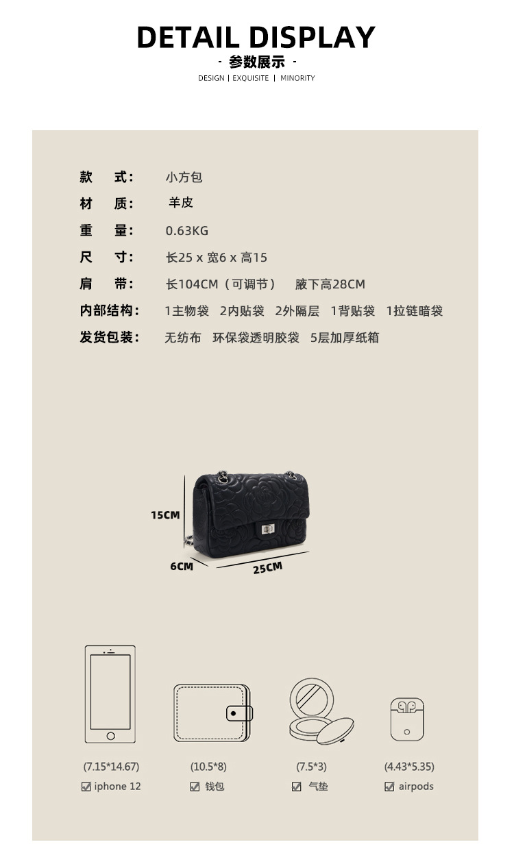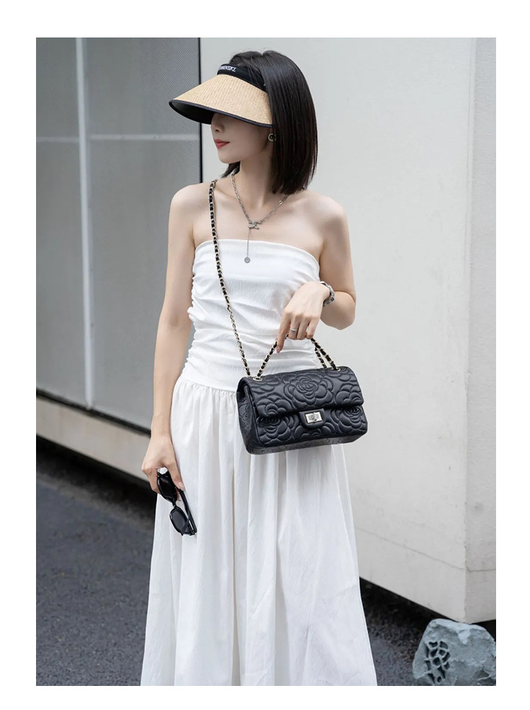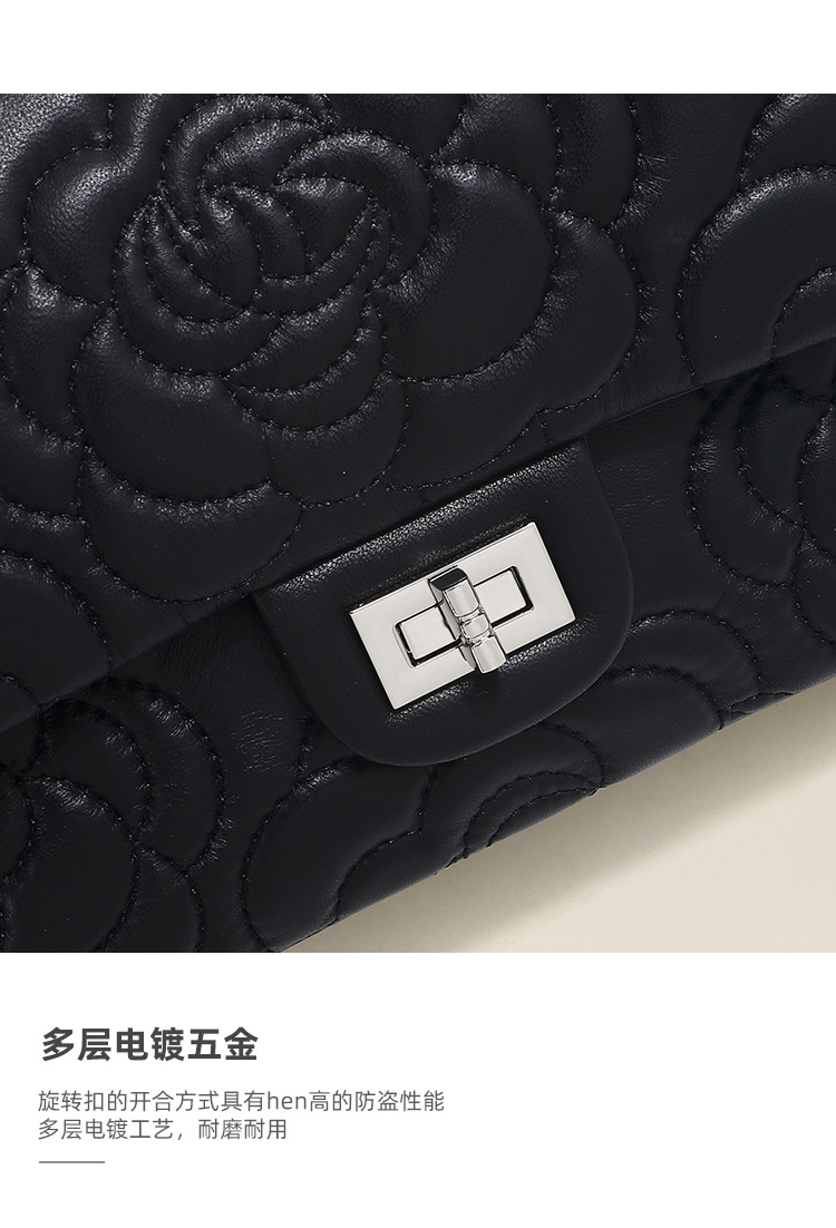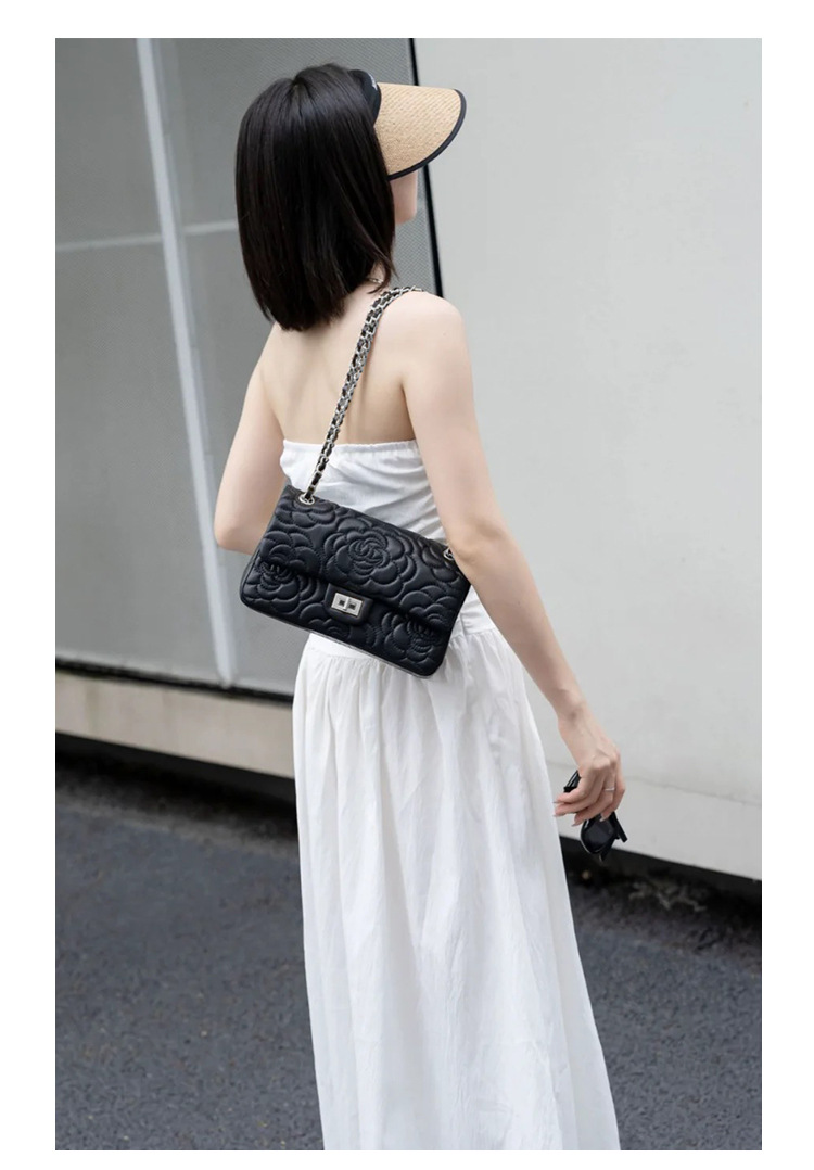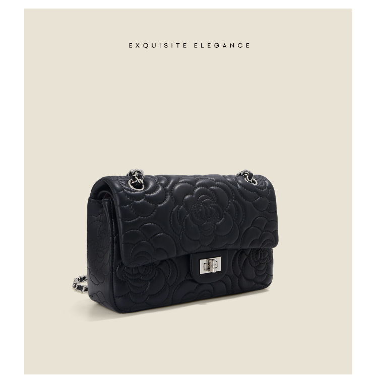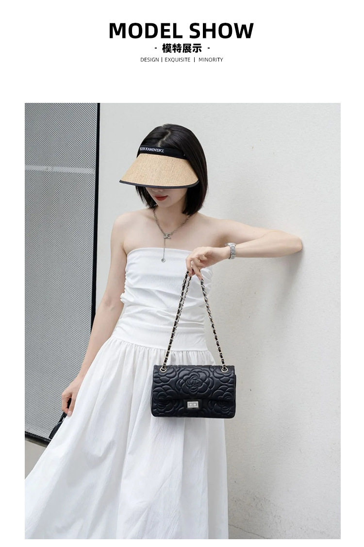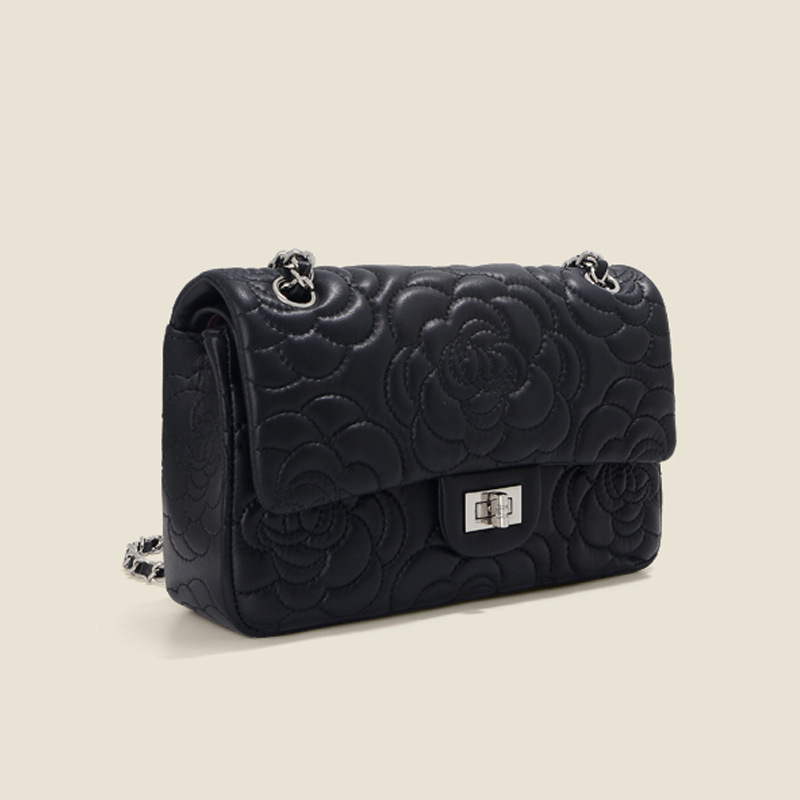 Chiếc túi xách này được làm từ chất liệu da cừu mềm mại, mang phong cách thanh lịch với họa tiết hình mắt lưới và điểm nhấn là bông hoa trà kiểu cách. Dây đeo chuỗi vòng kim loại giúp bạn dễ dàng mang trên v hoặc khoác chéo một cách tiện lợi. Kiểu dáng nhỏ gọn phù hợp cho những buổi tiệc tùng hay gặp gỡ hằng ngày. Bạn có thể sử dụng để đựng ví, điện thoại và một số vật dụng cá nhân cần thiết. | Tên sản phẩm: Túi Xách Nữ Chất Liệu Da Bò Kẻ Caro Họa Tiết Hoa - Túi Ví Nữ | Mã sản phẩm: A2297 - Giá: 1.490.000đ | Mã nhà sản xuất: GUDEA-G04Hình ảnh sản phẩm
