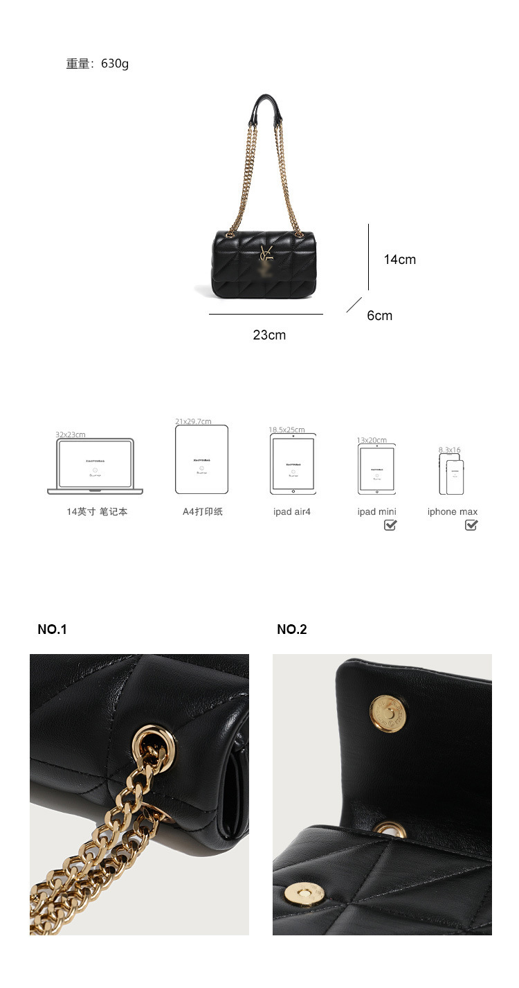 Chiếc túi xách tay thiết kế nhỏ gọn, hình dáng vuông vức với họa tiết ô kẻ nổi bật. Dây đeo chuỗi vòng kim loại giúp bạn dễ dàng mang trên v hoặc chéo người một cách thoải mái. Kiểu dáng cổ điển kết hợp nét hiện đại, phù hợp cho nhiều dịp sử dụng hằng ngày. Bạn có thể dùng nó để đựng các vật dụng cá nhân cần thiết khi đi làm, đi chơi hay dạo phố. | Tên sản phẩm: Túi Đeo Vai Nữ Kẻ Caro Kẻ Caro Phục Cổ Cổ Điển - Túi Ví Nữ | Mã sản phẩm: A2362 - Giá: 870.000đ | Mã nhà sản xuất: GUDAT-G03Hình ảnh sản phẩm
