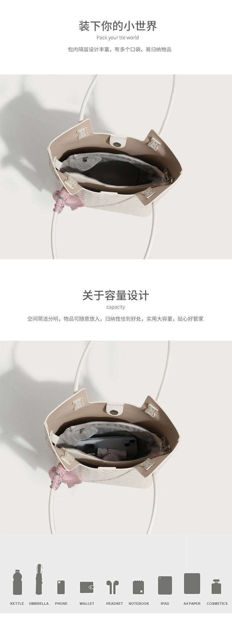 Chiếc túi xách kiểu dáng mới, lấy cảm hứng từ hình dáng chiếc xô, mang đến vẻ ngoại hình đơn giản nhưng vẫn rất hợp thời. Thiết kế có điểm nhấn riêng, không dễ bị trùng lặp. Túi có sức chứa lớn, rất phù hợp để mang đi làm hoặc dùng hàng ngày. Bạn có thể khoác trên v một cách thoải mái. Chất liệu bền đẹp, giúp túi giữ được dáng đứng ngay ngắn. Sản phẩm tiện lợi, dễ dàng phối hợp với nhiều loại trang phục khác nhau. | Tên sản phẩm: Túi Đeo Vai Nữ - Túi Ví Nữ | Mã sản phẩm: A2377 - Giá: 780.000đ | Mã nhà sản xuất: GUDAT-G02Hình ảnh sản phẩm