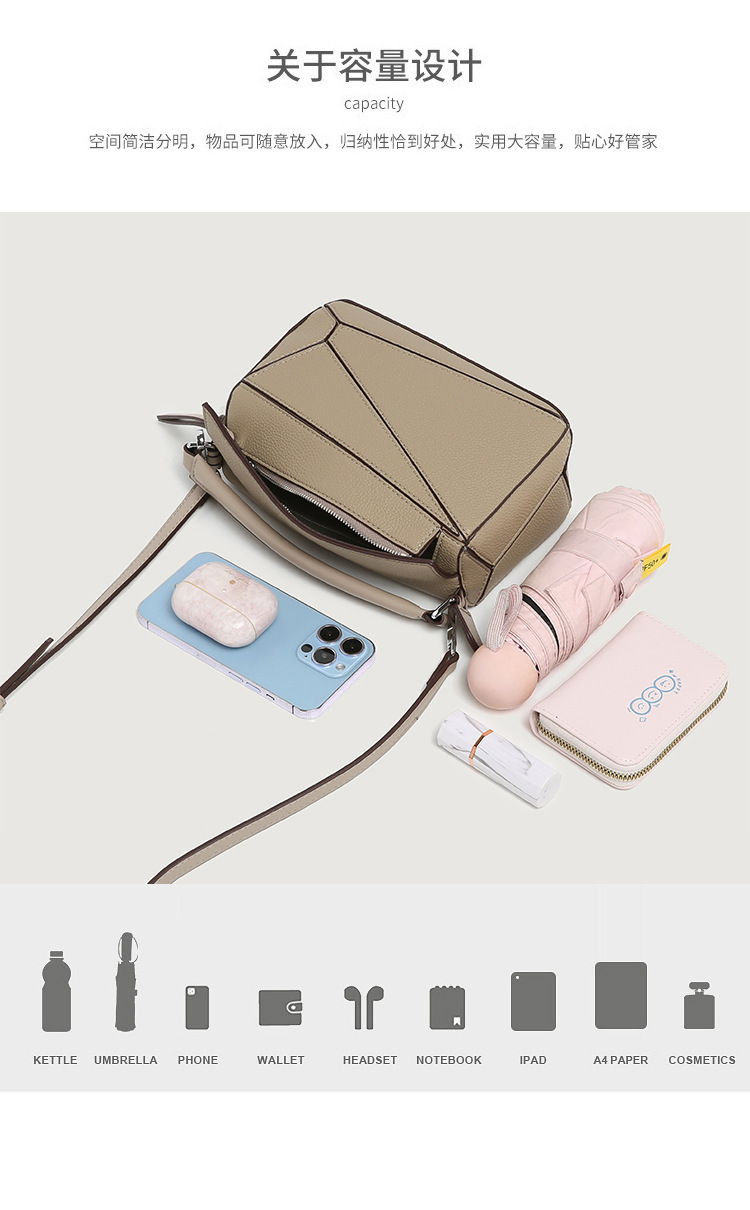Túi xách hình khối đa năng, thiết kế thời trang với các mảng ghép màu sắc tinh tế. Bề mặt túi có đường vân mịn tạo điểm nhấn độc đáo. Kiểu dáng đeo chéo tiện lợi, trọng lượng nhẹ nhưng vẫn đảm bảo không gian rộng rãi bên trong. Phù hợp dùng hàng ngày khi đi làm, đi chơi hoặc du lịch. Cách sử dụng đơn giản: điều chỉnh dây đeo theo chiều dài phù hợp, khoá kéo bảo vệ đồ dùng bên trong. | Tên sản phẩm: Túi Xách Nữ Hàng Mùa Xuân Thu Đông - Túi Ví Nữ | Mã sản phẩm: A2384 - Giá: 750.000đ | Mã nhà sản xuất: GUDAT-G02Hình ảnh sản phẩm