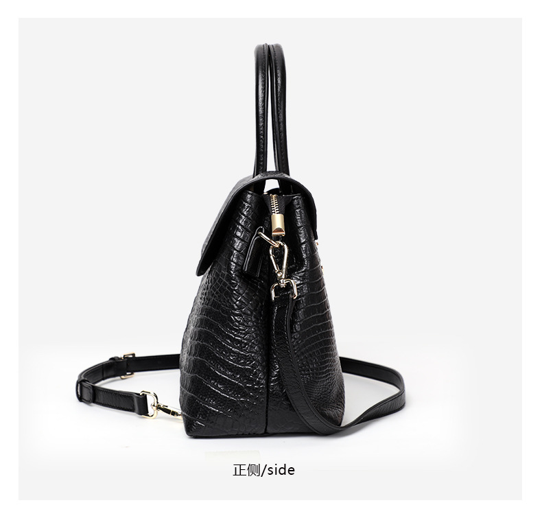 Túi xách phụ nữ được làm từ chất liệu da bò tự nhiên, bề mặt có họa tiết vảy cá sấu tinh tế. Kiểu dáng thiết kế hiện đại, có thể đeo bằng tay, khoác v hoặc mang chéo một cách linh hoạt. Màu sắc đen dễ dàng phối hợp với nhiều loại trang phục khác nhau. Sản phẩm phù hợp cho nhiều dịp sử dụng hằng ngày như đi làm, gặp gỡ hay dạo phố. Kết cấu ngăn xếp hợp lý giúp chứa đựng các vật dụng cá nhân một cách gọn gàng và thuận tiện. | Tên sản phẩm: Túi Xách Nữ Chất Liệu Da Bò Vân Da Cá Sấu - Túi Ví Nữ | Mã sản phẩm: A2398 - Giá: 1.680.000đ | Mã nhà sản xuất: GUDHI-G05Hình ảnh sản phẩm