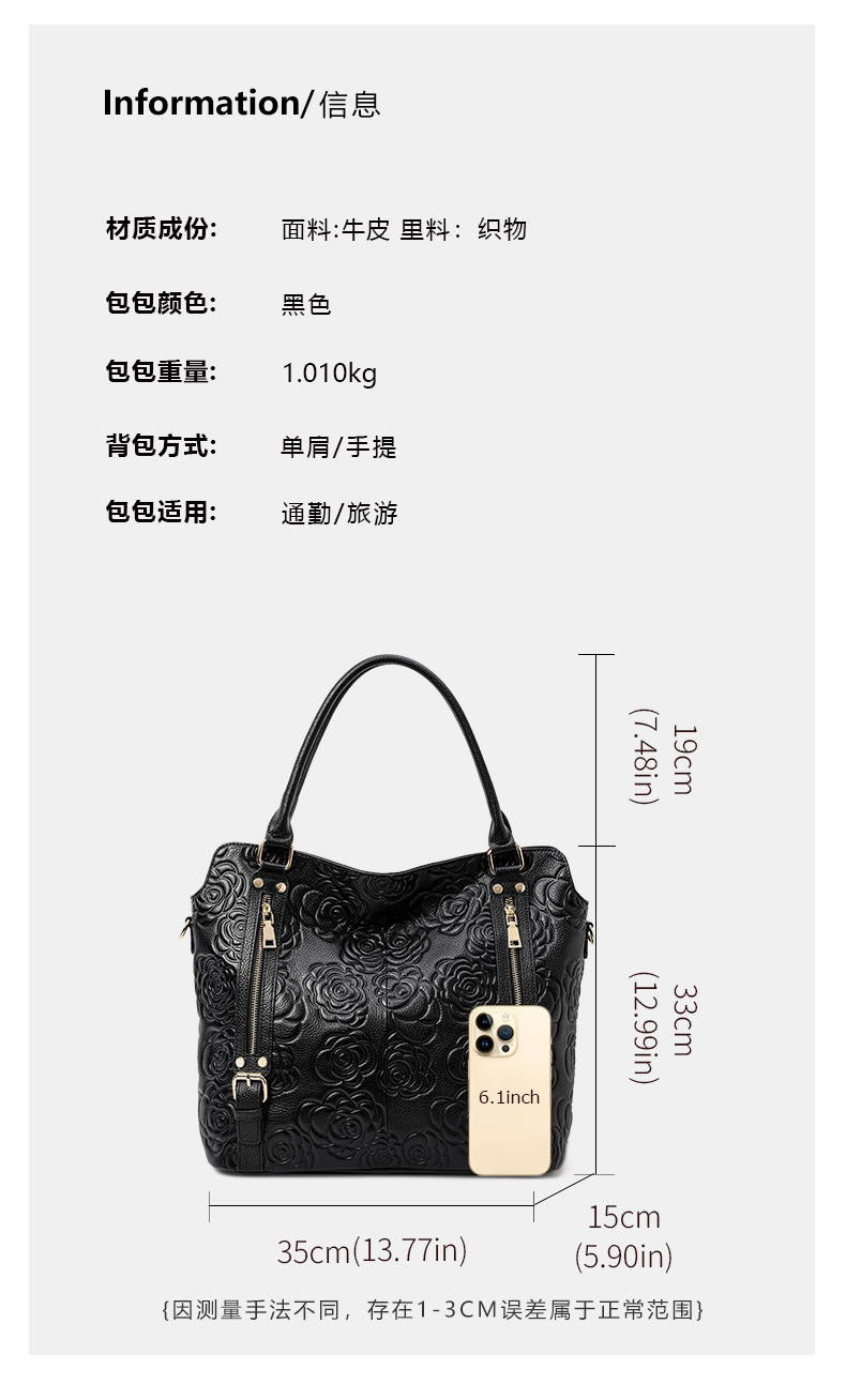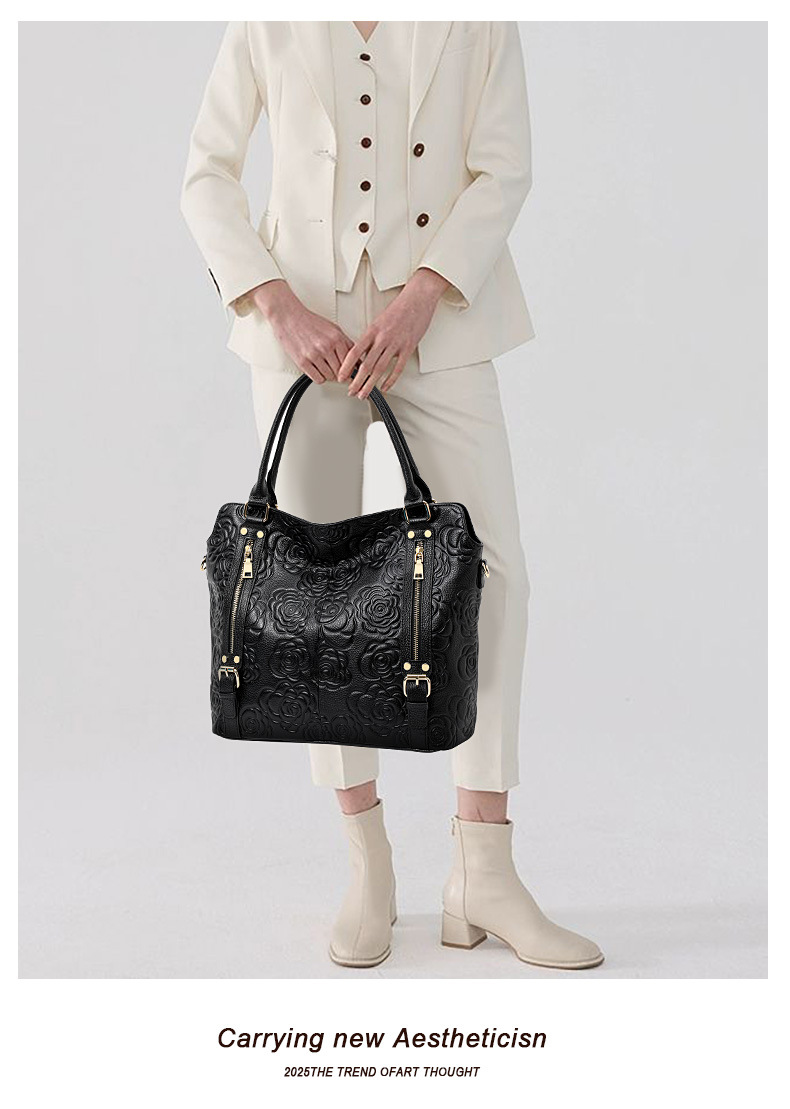 Túi xách tay dành cho nữ với sức chứa rộng rãi, được làm từ chất liệu da bò thật, bền đẹp theo thời gian. Bề mặt túi có họa tiết dập nổi tinh tế, tạo điểm nhấn riêng biệt. Kiểu dáng thiết kế hiện đại, có thể đeo bằng tay hoặc mang chéo người một cách linh hoạt. Phù hợp để sử dụng hàng ngày, đi làm hay khi dạo phố. Bạn có thể dễ dàng phối hợp với nhiều trang phục khác nhau. | Tên sản phẩm: Túi Xách Nữ Chất Liệu Da Bò Họa Tiết Hoa - Túi Ví Nữ | Mã sản phẩm: A2403 - Giá: 1.680.000đ | Mã nhà sản xuất: GUDHI-G05Hình ảnh sản phẩm