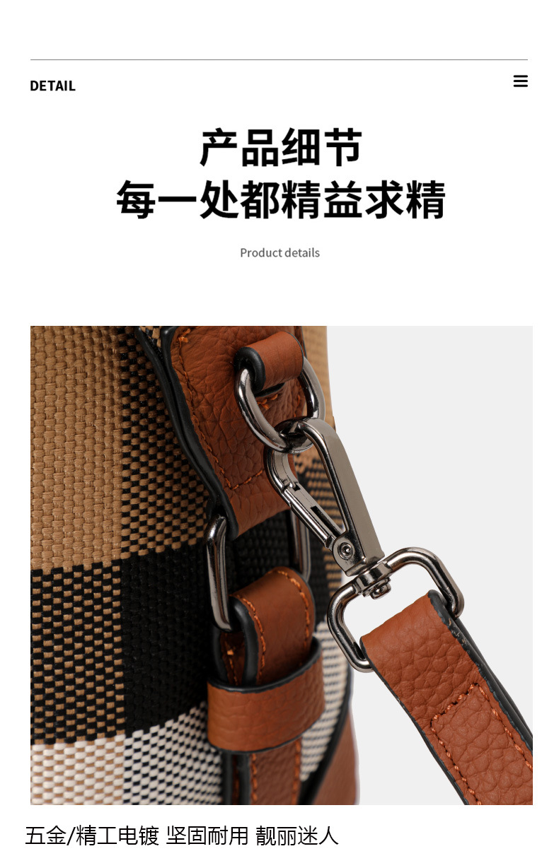 Chiếc túi khoác chéo này có kiểu dáng đơn giản, dễ phối đồ. Túi được kết hợp từ chất liệu vải bố bền bỉ cùng phần da bò thật ở một số chi tiết. Mặt trước túi điểm xuyến họa tiết kẻ caro, tạo nên điểm nhấn nổi bật. Dây đeo có thể điều chỉnh linh hoạt, mang lại sự thoải mái khi đeo. Bạn có thể dùng nó để đựy vừa đủ các vật dụng cá nhân hằng ngày như điện thoại, ví và một vài món đồ nhỏ. | Tên sản phẩm: Túi Xách Nữ Chất Liệu Da Bò Kẻ Caro Kẻ Caro Hàng Mùa Xuân Thu Đông - Túi Ví Nữ | Mã sản phẩm: A2415 - Giá: 1.590.000đ | Mã nhà sản xuất: GUDHI-G04Hình ảnh sản phẩm
