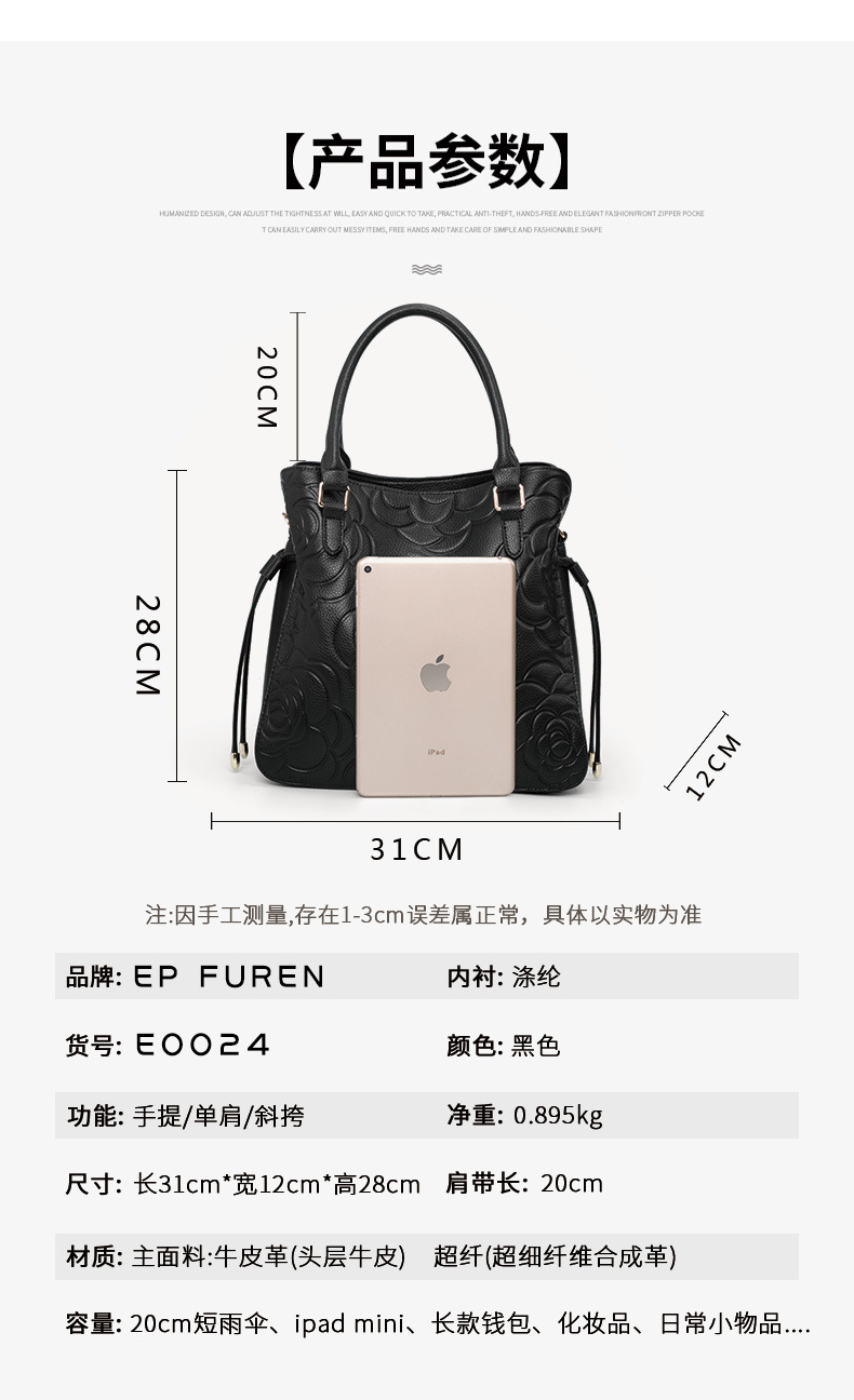 Túi xách phù hợp cho các chị em trung niên, được làm từ chất liệu da bò mềm mại và bền đẹp. Kiểu dáng kết hợp giữa đeo v và xách tay một cách linh hoạt. Mẫu mã mới với họa tiết dập nổi tinh tế, tôn lên vẻ đẹp dịu dàng và đầy khí chất. Sản phẩm có ngăn rộng rãi, rất tiện lợi để đựng các vật dụng cá nhân hằng ngày. Sử dụng túi một cách nhẹ nhàng và lau chùi bằng khăn mềm khi cần thiết. | Tên sản phẩm: Túi Xách Nữ Chất Liệu Da Bò Họa Tiết Hoa Trung Niên - Túi Ví Nữ | Mã sản phẩm: A2436 - Giá: 1.560.000đ | Mã nhà sản xuất: GUDHI-G04Hình ảnh sản phẩm