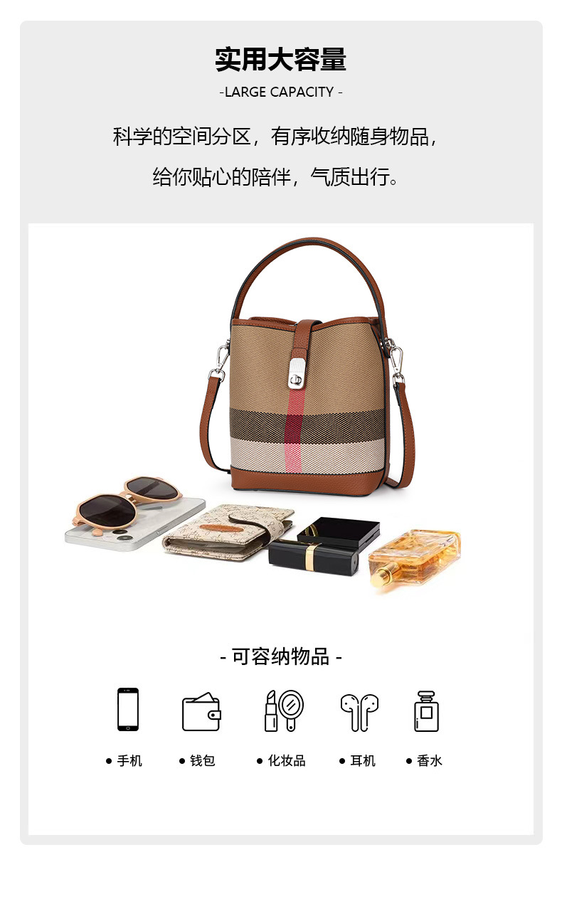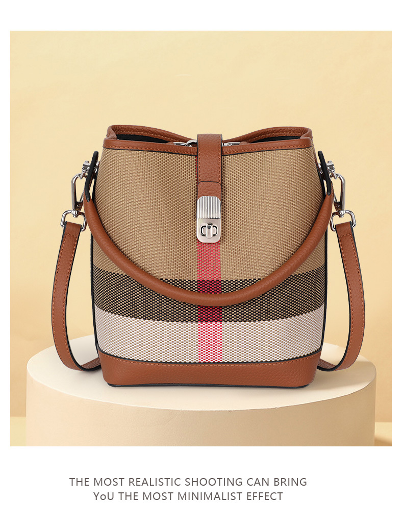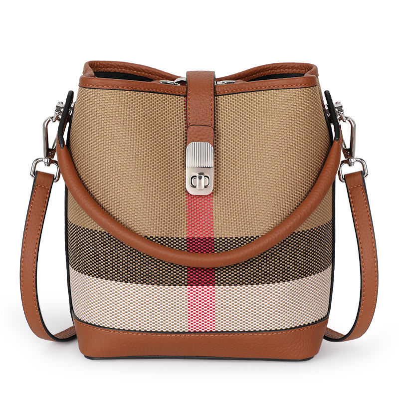 Chiếc túi xách kiểu thùng nước này có mặt ngoài làm từ chất liệu da thật, kết hợp họa tiết ô vuông tinh tế. Kiểu dáng thời trang, dễ phối đồ với nhiều trang phục khác nhau. Sản phẩm có hai qu xách cho phép bạn đeo trên v hoặc khoác chéo một cách thoải mái. Đây là mẫu túi phù hợp cho các dịp đi chơi, dạo phố hàng ngày. Bạn có thể dùng nó để đựy ví, điện thoại và một số vật dụng cá nhân cần thiết. | Tên sản phẩm: Túi Xách Nữ Chất Liệu Da Bò Kẻ Caro Kẻ Caro - Túi Ví Nữ | Mã sản phẩm: A2443 - Giá: 1.490.000đ | Mã nhà sản xuất: GUDHI-G04Hình ảnh sản phẩm