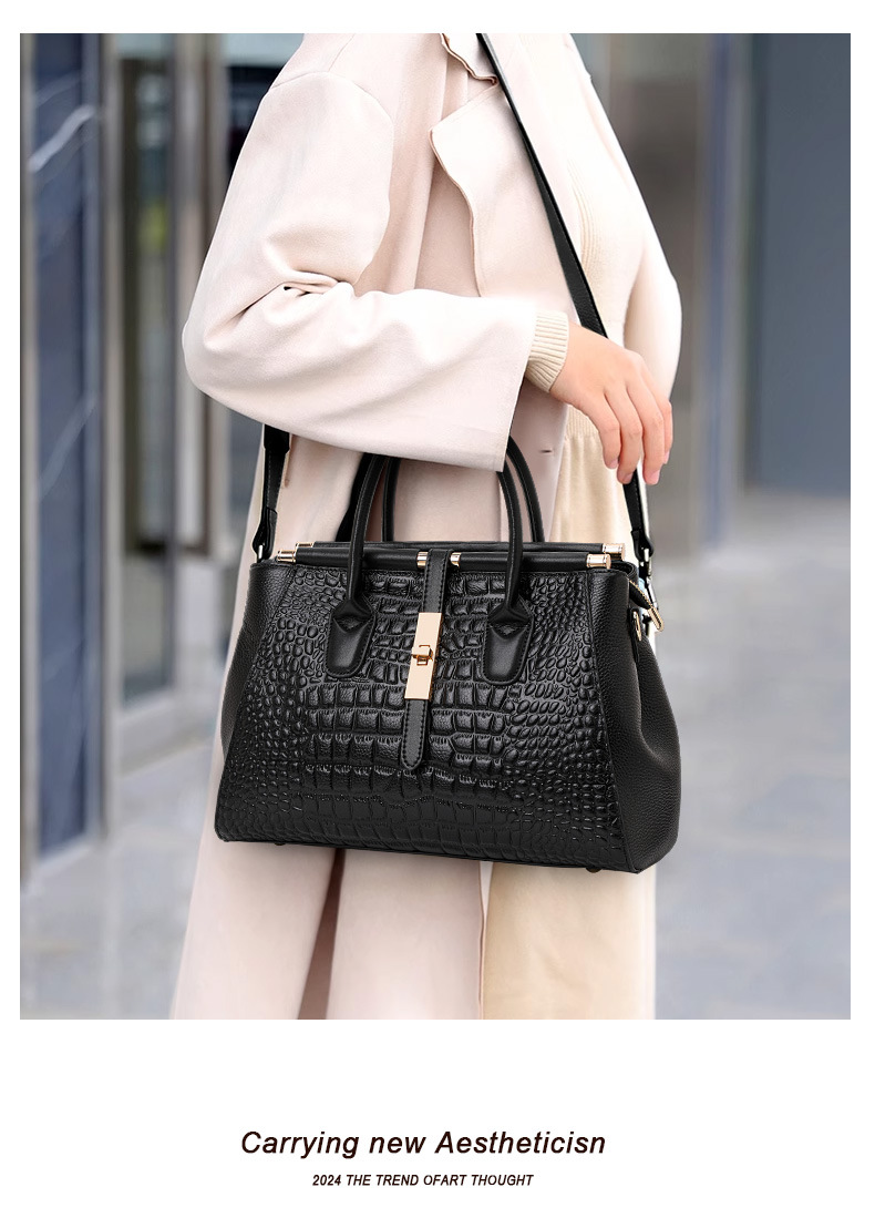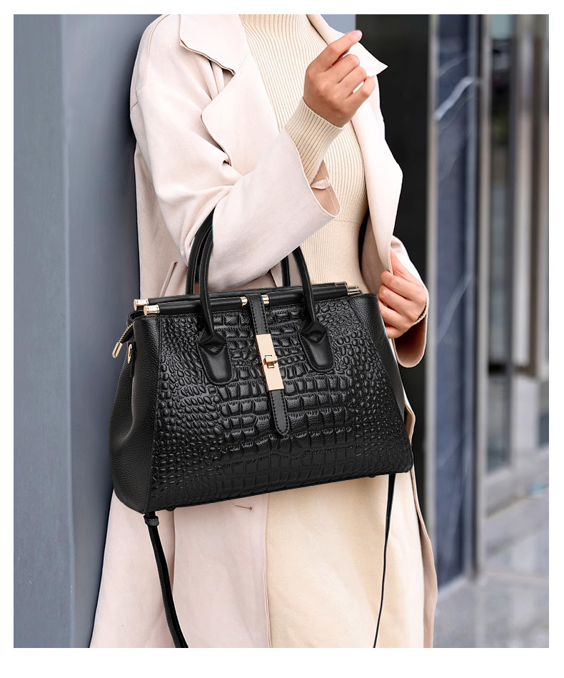 Chiếc túi này mang phong cách châu Âu hiện đại, kiểu dáng vuông vức giữ form đẹp. Chất liệu bề mặt có vân da cá sấu tinh tế, kết cấu rõ nét. Sản phẩm có qu đeo v và qu xách linh hoạt, phù hợp cho nhiều dịp sử dụng. Bên trong túi rộng rãi, giúp bạn sắp xếp đồ dùng cá nhân một cách gọn gàng. Dùng túi hàng ngày để đựp các vật dụng cần thiết khi đi làm hoặc dạo phố. | Tên sản phẩm: Túi Xách Nữ Vân Da Cá Sấu Hàng Mùa Xuân Thu Đông Phong Cách Âu Mỹ - Túi Ví Nữ | Mã sản phẩm: A2451 - Giá: 1.680.000đ | Mã nhà sản xuất: GUDHI-G05Hình ảnh sản phẩm