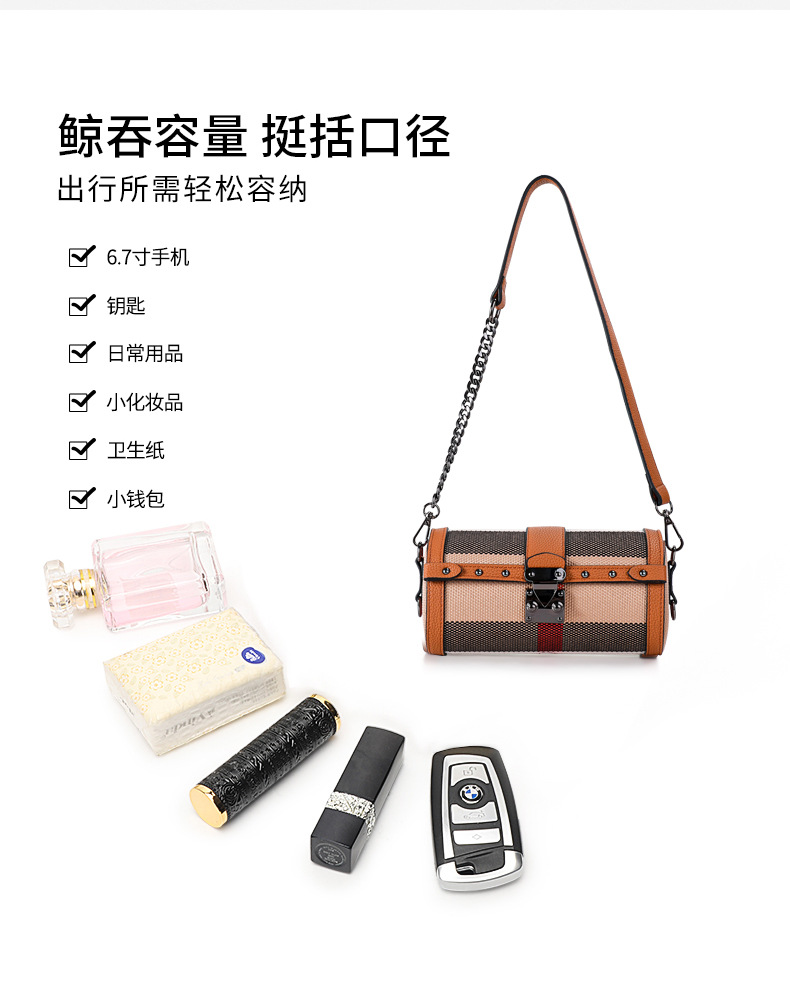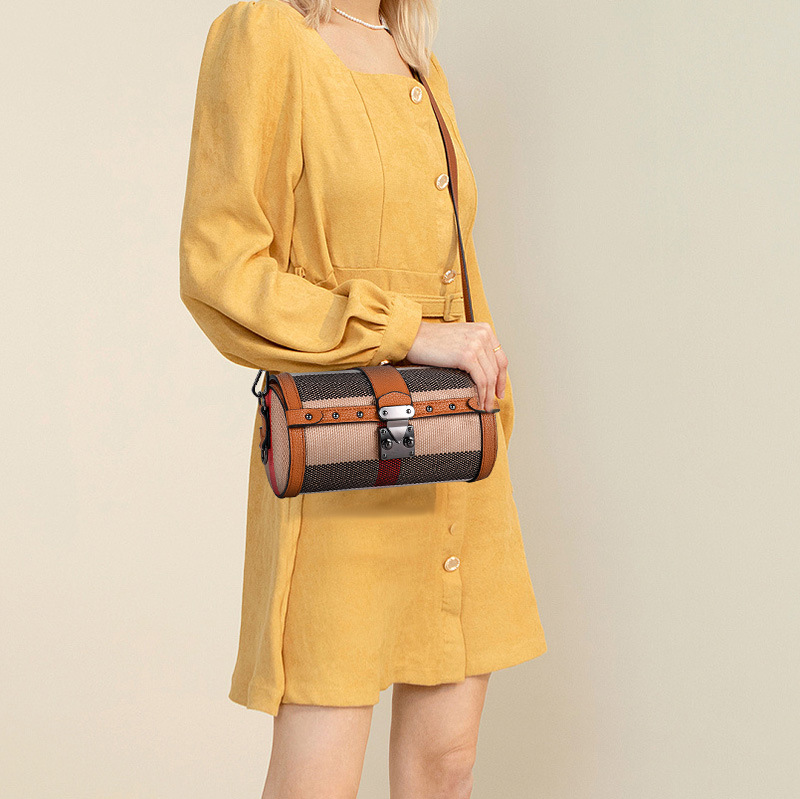Túi xách tay dành cho nữ, kiểu dáng tròn trĩnh như ống, rất hợp để mang vừa vặn dưới cánh tay. Chất liệu chính từ da thật tự nhiên, điểm nhấn là họa tiết ô vuông cổ điển phối cùng thân túi. Thiết kế này mang phong cách hoài cổ nhẹ nhàng, phù hợp cho những ngày hè. Có thể dùng làm túi đi chơi hàng ngày, dễ dàng phối hợp với nhiều loại trang phục khác nhau để tạo điểm nhấn. | Tên sản phẩm: Túi Xách Nữ Chất Liệu Da Bò Kẻ Caro Kẻ Caro Hàng Mùa Hè Phục Cổ Cổ Điển - Túi Ví Nữ | Mã sản phẩm: A2457 - Giá: 1.140.000đ | Mã nhà sản xuất: GUDHI-G04Hình ảnh sản phẩm