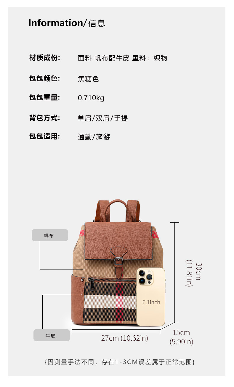 Ba lô nữ dáng hộp với họa tiết ô vuông cổ điển, mang phong cách học đường thanh lịch. Sản phẩm được làm từ chất liệu da bò mềm mại, bền chắc. Ngăn chính rộng rãi đựng vừa sách vở và máy tính, cùng ngăn phụ tiện lợi cho các vật dụng cá nhân. Đệm v êm ái giúp mang thoải mái cả ngày dài. Phù hợp cho việc đến trường, đi làm hay dạo phố. | Tên sản phẩm: Túi Đeo Vai Nữ Chất Liệu Da Bò Kẻ Caro Kẻ Caro Phong Cách Hàn Quốc - Túi Ví Nữ | Mã sản phẩm: A2510 - Giá: 1.390.000đ | Mã nhà sản xuất: GUDHI-G04Hình ảnh sản phẩm