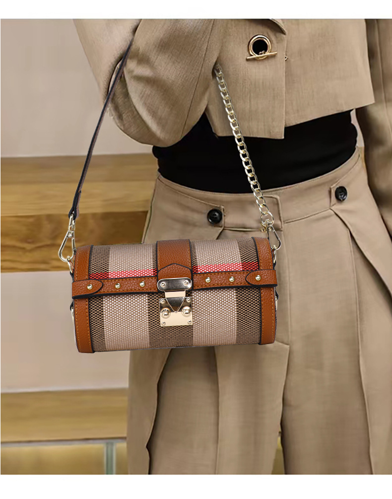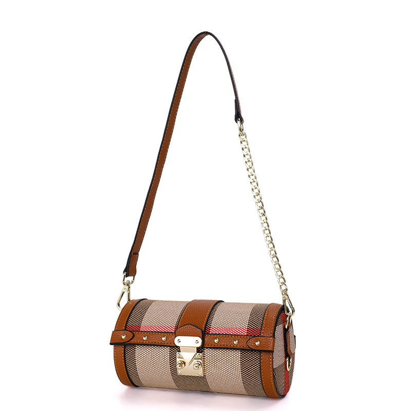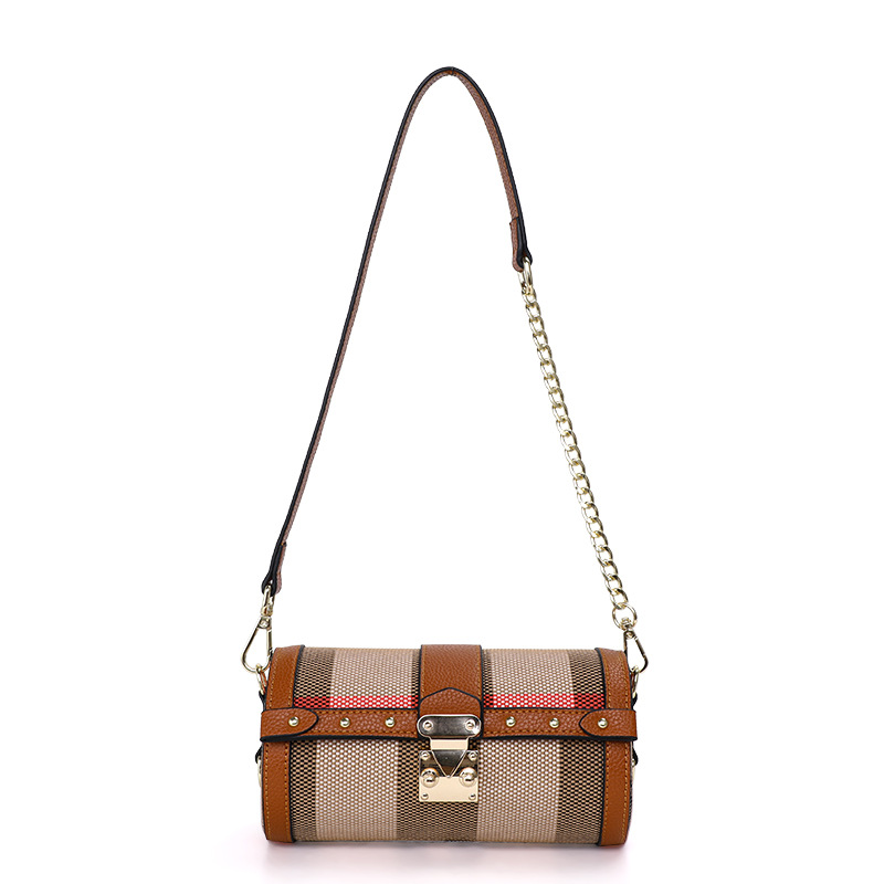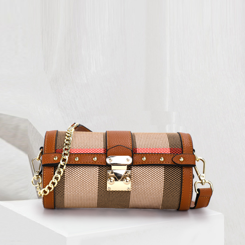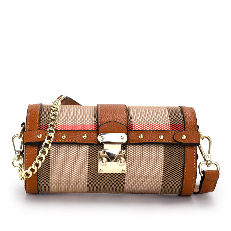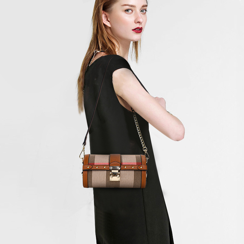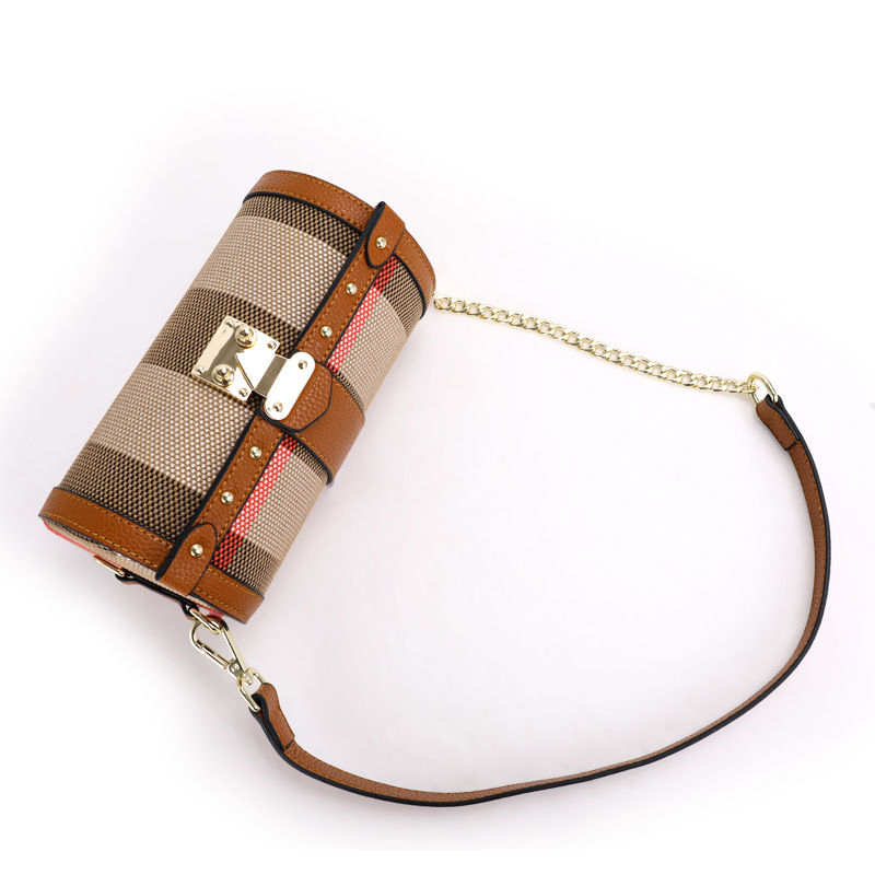 Túi xách tay nữ thiết kế hình trụ nhỏ gọn, mang phong cách thư thái. Sản phẩm được làm từ chất liệu da thật, kết hợp khéo léo nhiều mảnh ghép với các màu sắc tương phản độc đáo. Kiểu dáng tuy nhỏ nhắn nhưng vô cùng tinh tế, dây đeo v giúp bạn dễ dàng phối đồ. Cách sử dụng đơn giản, chỉ cần đeo v và kéo khóa là có thể mang theo những món đồ cá nhân cần thiết một cách tiện lợi. | Tên sản phẩm: Túi Xách Nữ Chất Liệu Da Bò - Túi Ví Nữ | Mã sản phẩm: A2525 - Giá: 1.140.000đ | Mã nhà sản xuất: GUDHI-G04Hình ảnh sản phẩm