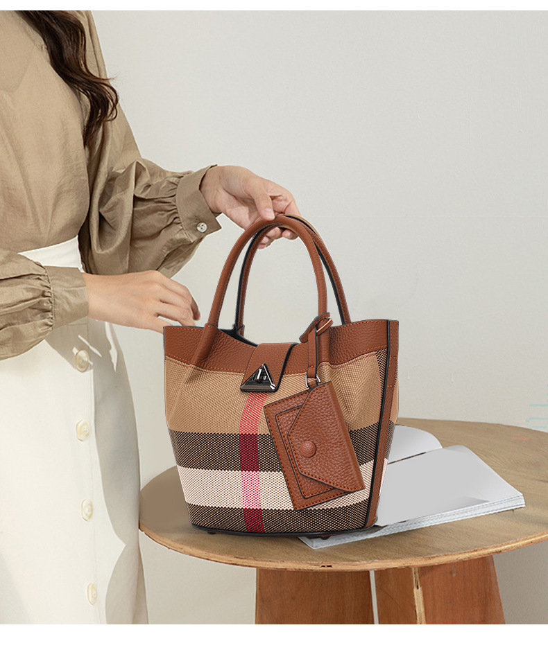 Chiếc túi xách mẫu mới cho các cô gái, kết hợp chất liệu vải bền và điểm nhấn từ da bò thật. Kiểu dáng túi tròn dễ thương, dây đeo có thể điều chỉnh để đeo chéo người hoặc vắt v. Thiết kế đơn giản nhưng có điểm nhấn, dễ dàng phối hợp với nhiều trang phục hàng ngày. Ngăn rộng rãi bên trong giúp đựng vừa ví, điện thoại và các vật dụng cá nhân cần thiết. | Tên sản phẩm: Túi Xách Nữ Chất Liệu Da Bò Hàng Mùa Xuân Thu Đông - Túi Ví Nữ | Mã sản phẩm: A2541 - Giá: 1.590.000đ | Mã nhà sản xuất: GUDHI-G04Hình ảnh sản phẩm