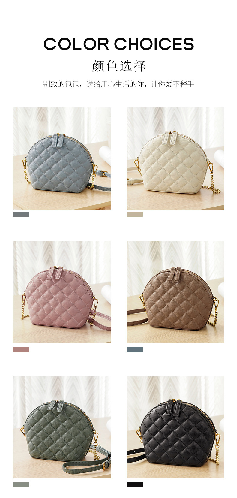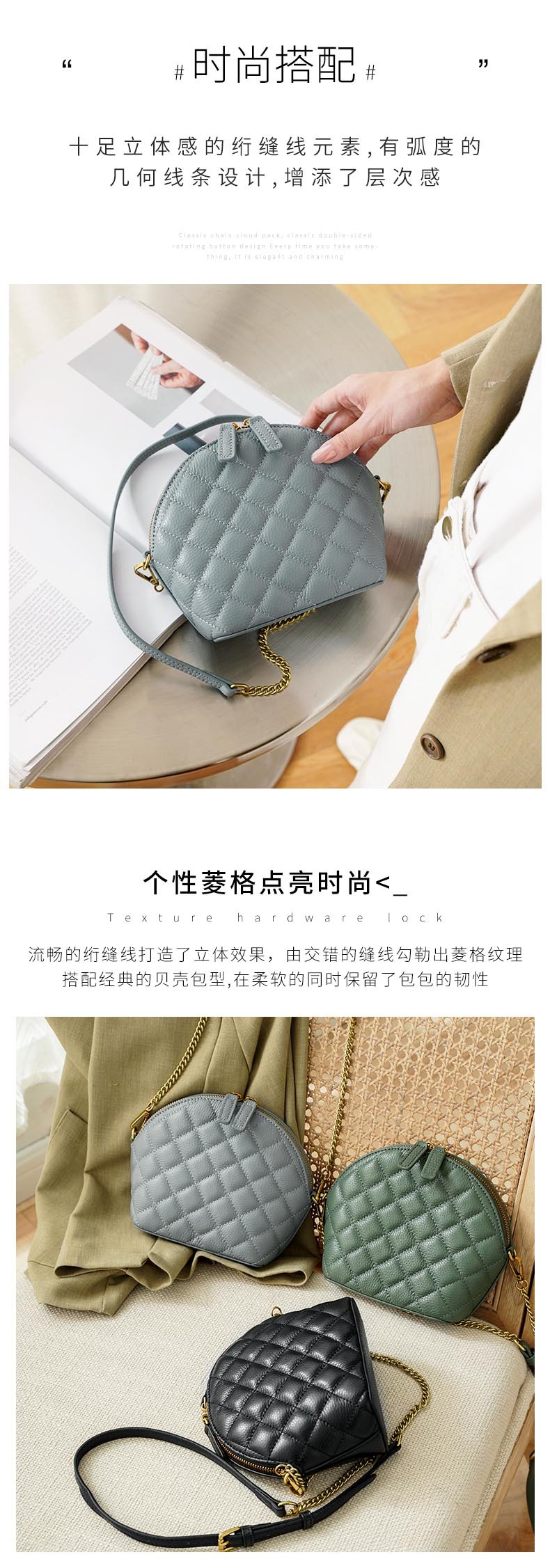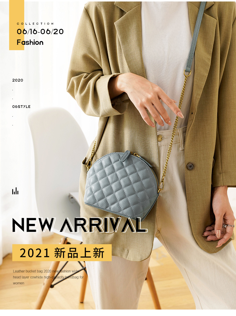 Chiếc túi xách nhỏ mang phong cách cổ điển với họa tiết hình thoi nổi bật. Chất liệu da bò thật cho cảm giác mềm mại và bền lâu. Kiểu dáng vỏ sò nhỏ gọn, đi kèm dây đeo chuỗi có thể điều chỉnh linh hoạt để đeo v hoặc khoác chéo. Thiết kế này dễ dàng phối hợp với nhiều trang phục khác nhau. Bạn có thể dùng nó để đựng các vật dụng cá nhân cần thiết như điện thoại, ví và chìa khóa khi đi chơi hoặc dạo phố. | Tên sản phẩm: Túi Xách Nữ Chất Liệu Da Bò Kẻ Caro Kẻ Caro - Túi Ví Nữ | Mã sản phẩm: A2611 - Giá: 940.000đ | Mã nhà sản xuất: GUDHI-G03Hình ảnh sản phẩm