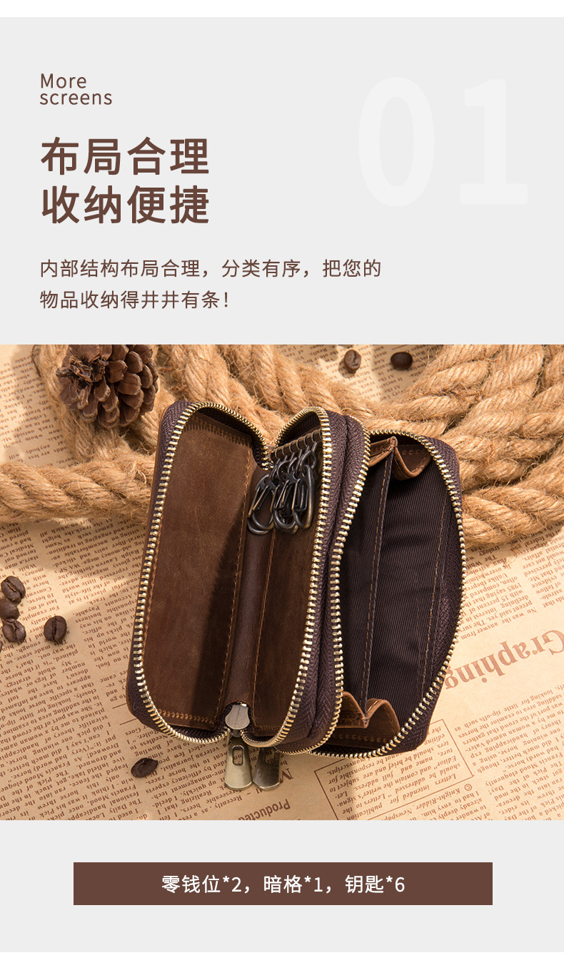 Bao da chìa khóa ô tô làm từ loại da bò đặc biệt có vân tự nhiên và màu sắc độc đáo. Sản phẩm có thiết kế nhiều ngăn, giúp bạn dễ dàng đựng chìa khóa xe, thẻ từ gửi xe hoặc thẻ ra vào cổng. Bên trong còn có ngăn nhỏ tiện lợi để đựng một ít tiền xu hoặc tiền giấy. Khi sử dụng, bạn chỉ cần luồn chìa khóa vào vòng kim loại và để thẻ từ ở ngăn chuyên dụng, giúp giữ các vật dụng gọn gàng và tránh bị mất. | Tên sản phẩm: Ví Bóp Nam Chất Liệu Da Bò - Túi Xách Ví Nam | Mã sản phẩm: A2689 - Giá: 610.000đ | Mã nhà sản xuất: GUDEA-G02Hình ảnh sản phẩm