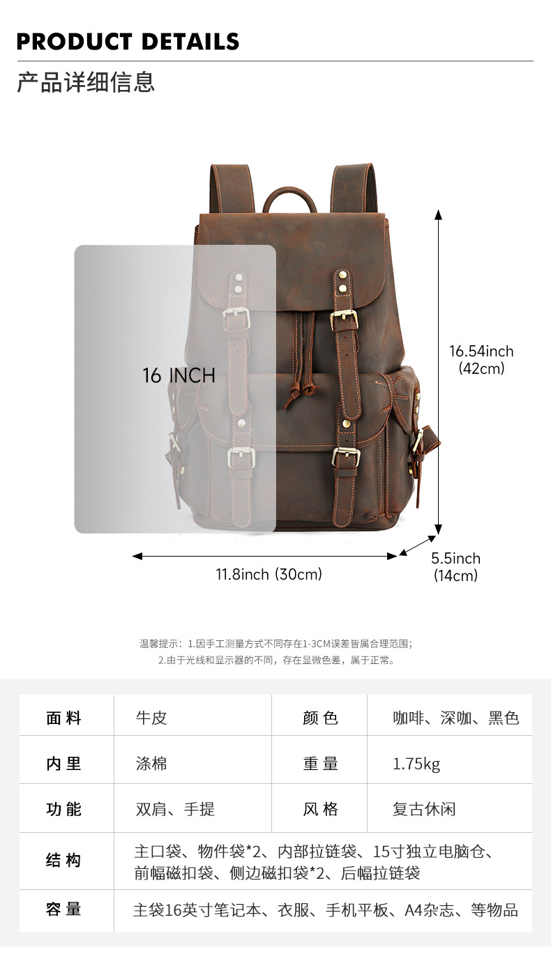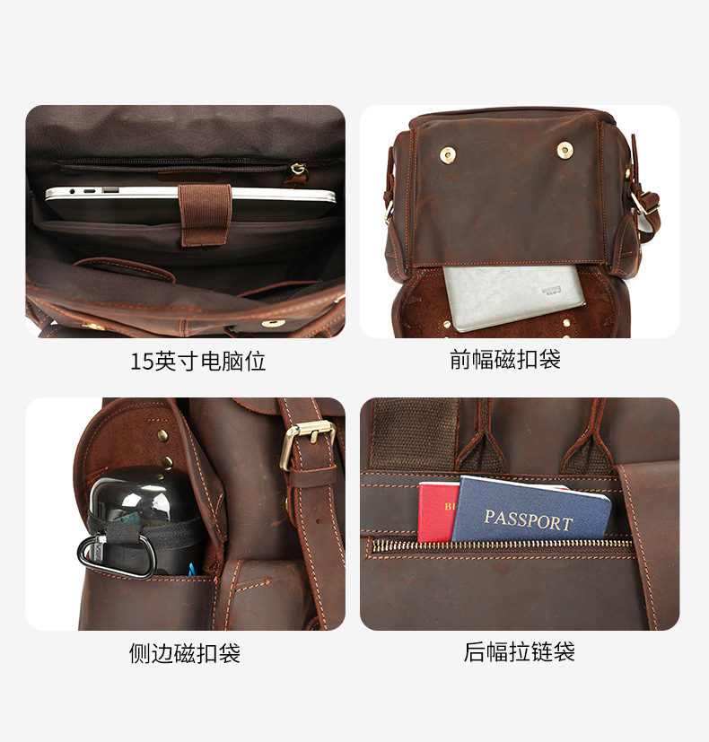 Ba lô nam với phong cách cổ điển, được làm từ chất da bò tự nhiên có độ bền cao và vẻ ngoài độc đáo. Thiết kế nhiều ngăn rộng rãi giúp chứa đựng đồ dùng cá nhân, sách vở hoặc đồ dùng cho những chuyến đi chơi ngắn ngày một cách gọn gàng. Dây đeo êm ái, điều chỉnh dễ dàng để mang thoải mái. Sản phẩm phù hợp cho việc đi học, đi làm hoặc khi du lịch. Sử dụng hàng ngày và lau sạch nhẹ nhàng bằng vải mềm. | Tên sản phẩm: Túi Đeo Vai Nam Chất Liệu Da Bò Phục Cổ Cổ Điển - Túi Xách Ví Nam | Mã sản phẩm: A2694 - Giá: 2.730.000đ | Mã nhà sản xuất: GUDEA-G06Hình ảnh sản phẩm
