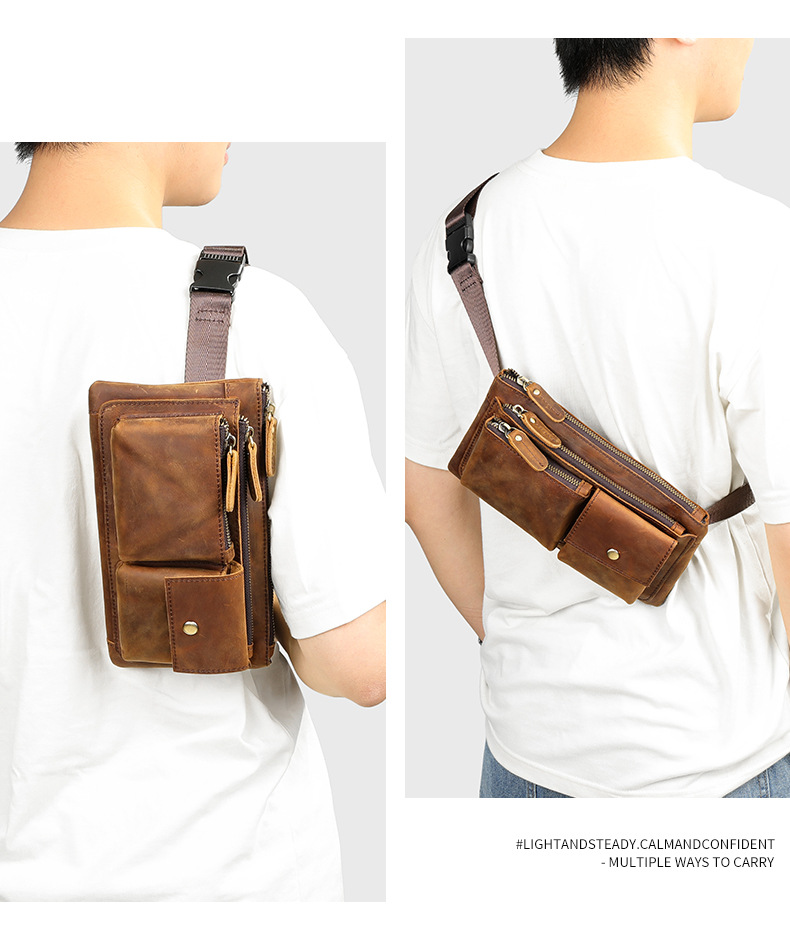 Chiếc túi ngực dành cho nam, được làm từ chất liệu da bò tự nhiên, mang phong cách cổ điển và năng động. Thiết kế đeo chéo hoặc đeo hông tiện lợi, phù hợp cho các chuyến du lịch hay sinh hoạt hằng ngày. Bên trong túi có nhiều ngăn rộng rãi, giúp bạn sắp xếp ví, điện thoại và các vật dụng cá nhân một cách gọn gàng. Sản phẩm dễ dàng sử dụng, chỉ cần điều chỉnh dây đeo cho vừa vặn và khoá lại là xong. | Tên sản phẩm: Túi Xách Nam Chất Liệu Da Bò Phục Cổ Cổ Điển - Túi Xách Ví Nam | Mã sản phẩm: A2710 - Giá: 770.000đ | Mã nhà sản xuất: GUDEA-G02Hình ảnh sản phẩm