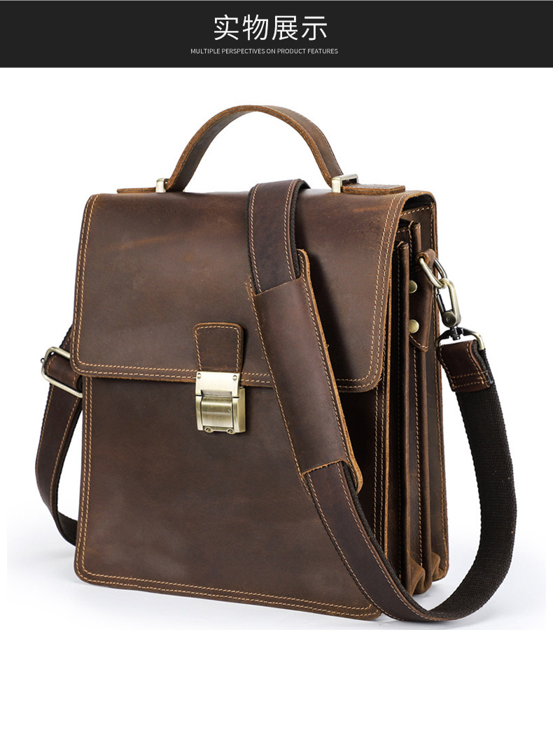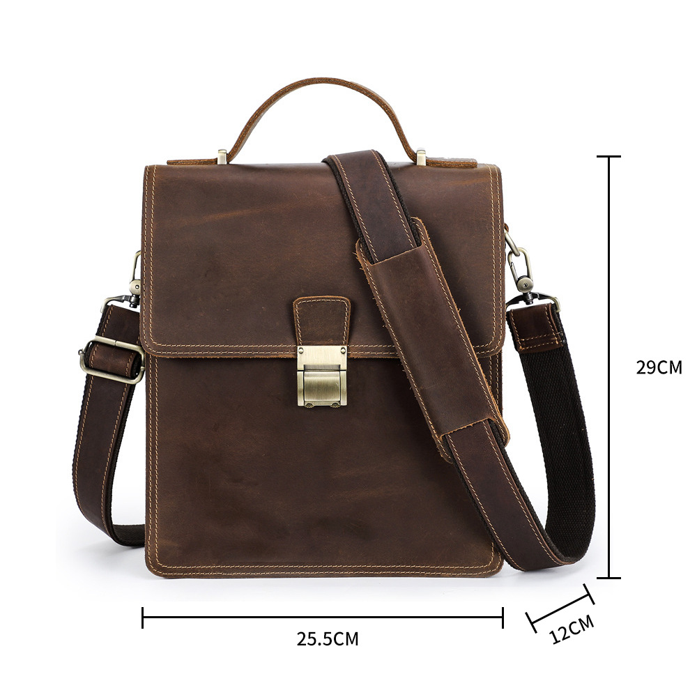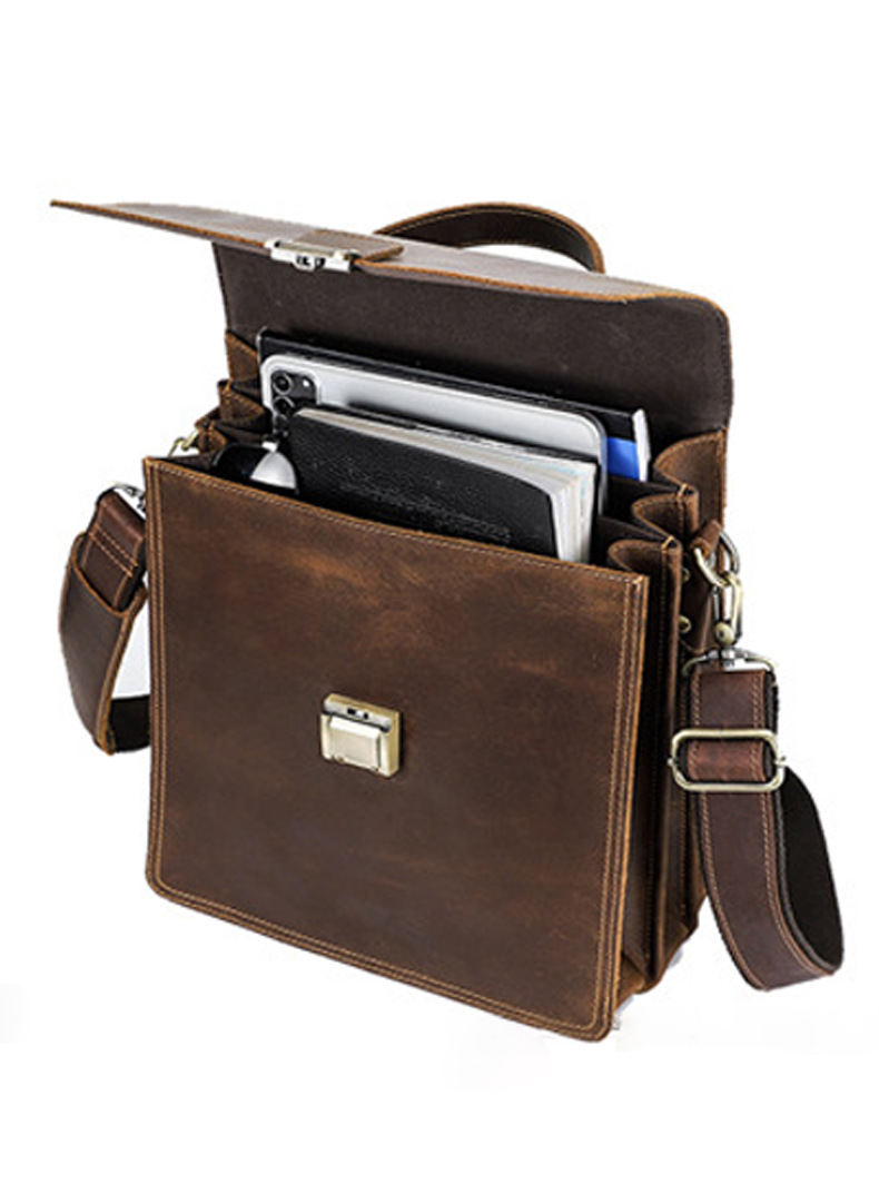 Chiếc túi đeo chéo dành cho nam, được làm từ chất liệu da bò thật tự nhiên với vân mềm mại. Thiết kế dáng đứng, kiểu dáng phóng khoáng, phù hợp cho nhiều dịp sử dụng. Túi có khóa cài chắc chắn, có thể đeo v hoặc xách tay một cách thuận tiện. Sản phẩm kết hợp phong cách năng động và tính thực tiễn, dễ dàng phối cùng nhiều trang phục thường ngày. | Tên sản phẩm: Túi Xách Nam Chất Liệu Da Bò Phong Cách Âu Mỹ - Túi Xách Ví Nam | Mã sản phẩm: A2711 - Giá: 3.240.000đ | Mã nhà sản xuất: GUDEA-G06Hình ảnh sản phẩm