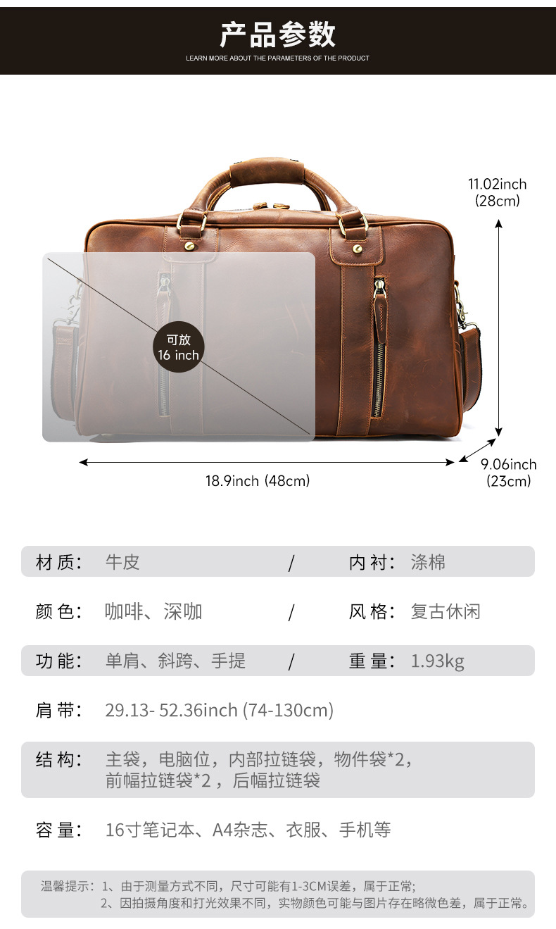 Túi xách du lịch này mang phong cách cổ điển, phù hợp cho những chuyến đi ngắn ngày hoặc công tác. Chất liệu da bò xử lý đặc biệt tạo vẻ ngoài mềm mại và bền bỉ. Sản phẩm có qu xách tay và dây đeo v linh hoạt, giúp mang theo tiện lợi. Bên trong túi đủ rộng rãi để đựng các vật dụng cá nhân cần thiết. Bạn có thể dùng hàng ngày hoặc làm túi đựng đồ khi di chuyển. | Tên sản phẩm: Túi Xách Nam Chất Liệu Da Bò Phục Cổ Cổ Điển - Túi Xách Ví Nam | Mã sản phẩm: A2772 - Giá: 2.940.000đ | Mã nhà sản xuất: GUDEA-G06Hình ảnh sản phẩm