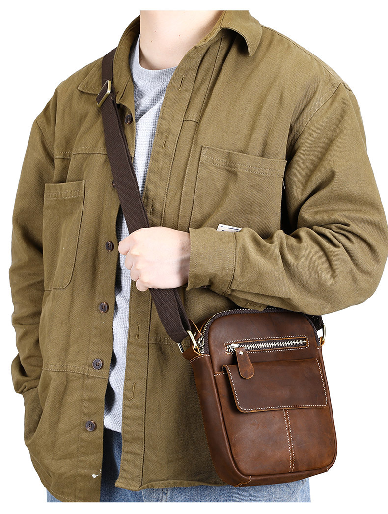 Chiếc túi đeo chéo dành cho nam này được làm từ chất liệu da bò mềm mại và bền bỉ. Kiểu dáng trẻ trung và lịch sự, phù hợp cho cả công việc và những lúc thư giãn. Túi có một ngăn chính rộng rãi cùng các ngăn phụ tiện lợi, giúp bạn sắp xếp ví, điện thoại và các vật dụng cá nhân một cách gọn gàng. Bạn chỉ cần đeo túi vắt chéo qua v, điều chỉnh dây đeo cho vừa vặn là đã có thể mang theo mọi thứ một cách thoải mái và tiện lợi. | Tên sản phẩm: Túi Đeo Vai Nam Chất Liệu Da Bò - Túi Xách Ví Nam | Mã sản phẩm: A2783 - Giá: 1.060.000đ | Mã nhà sản xuất: GUDEA-G03Hình ảnh sản phẩm