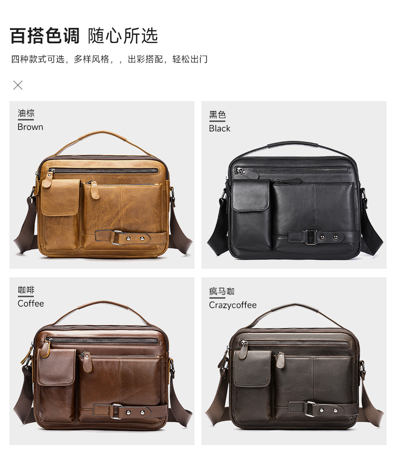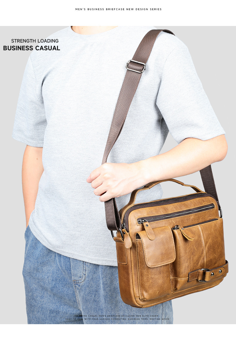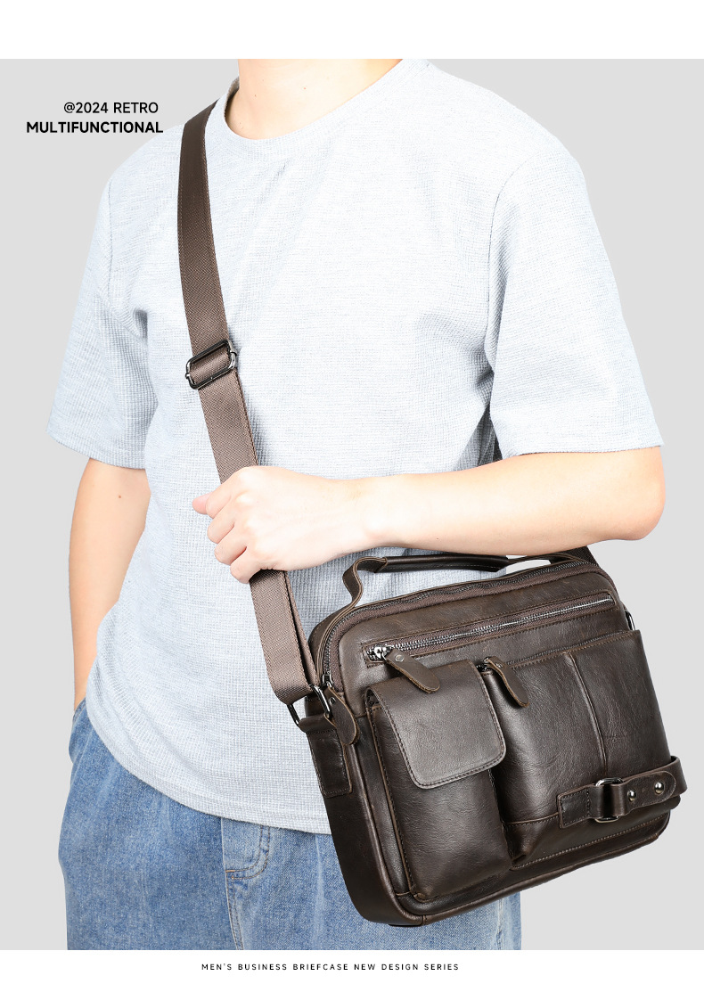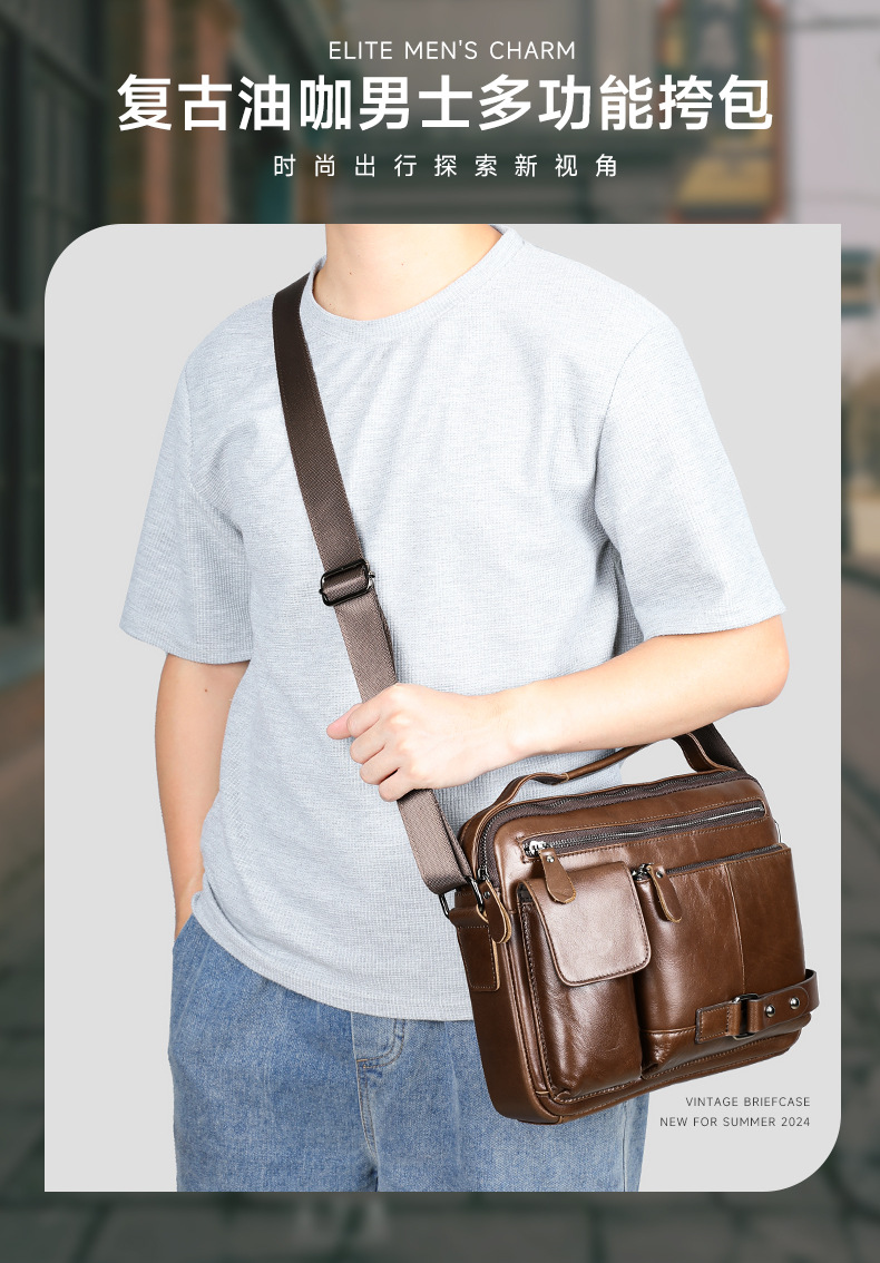 Chiếc túi đeo chéo dành cho nam giới này mang phong cách hoài cổ, được làm từ chất liệu da bò mềm mại với vân độc đáo. Thiết kế túi có dung tích rộng rãi, giúp bạn dễ dàng sắp xếp các vật dụng cá nhân. Sản phẩm có thể đeo chéo một cách thoải mái hoặc mang tay một cách linh hoạt. Bạn chỉ cần điều chỉnh dây đeo cho vừa vặn và sử dụng hàng ngày, rất tiện lợi và phù hợp với nhiều hoàn cảnh. | Tên sản phẩm: Túi Xách Nam Chất Liệu Da Bò Phong Cách Âu Mỹ - Túi Xách Ví Nam | Mã sản phẩm: A2801 - Giá: 1.290.000đ | Mã nhà sản xuất: GUDEA-G04Hình ảnh sản phẩm