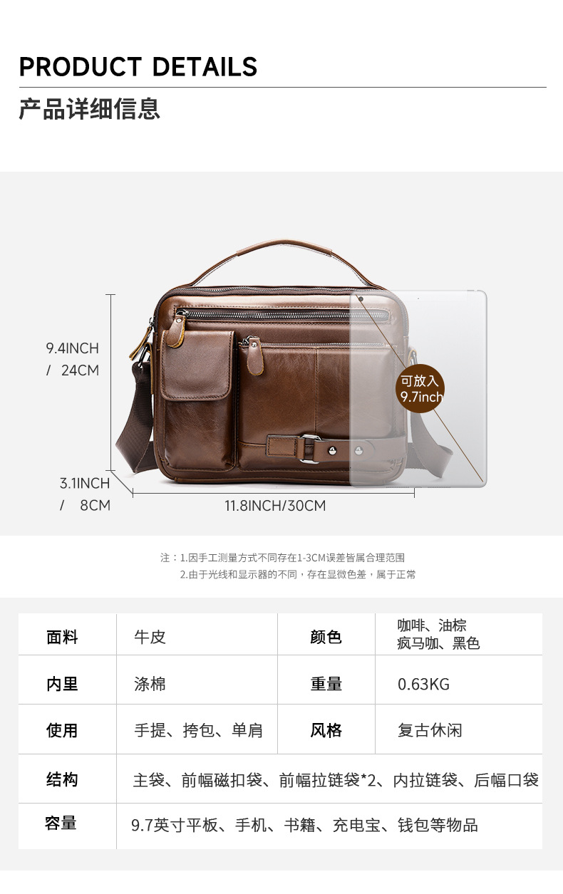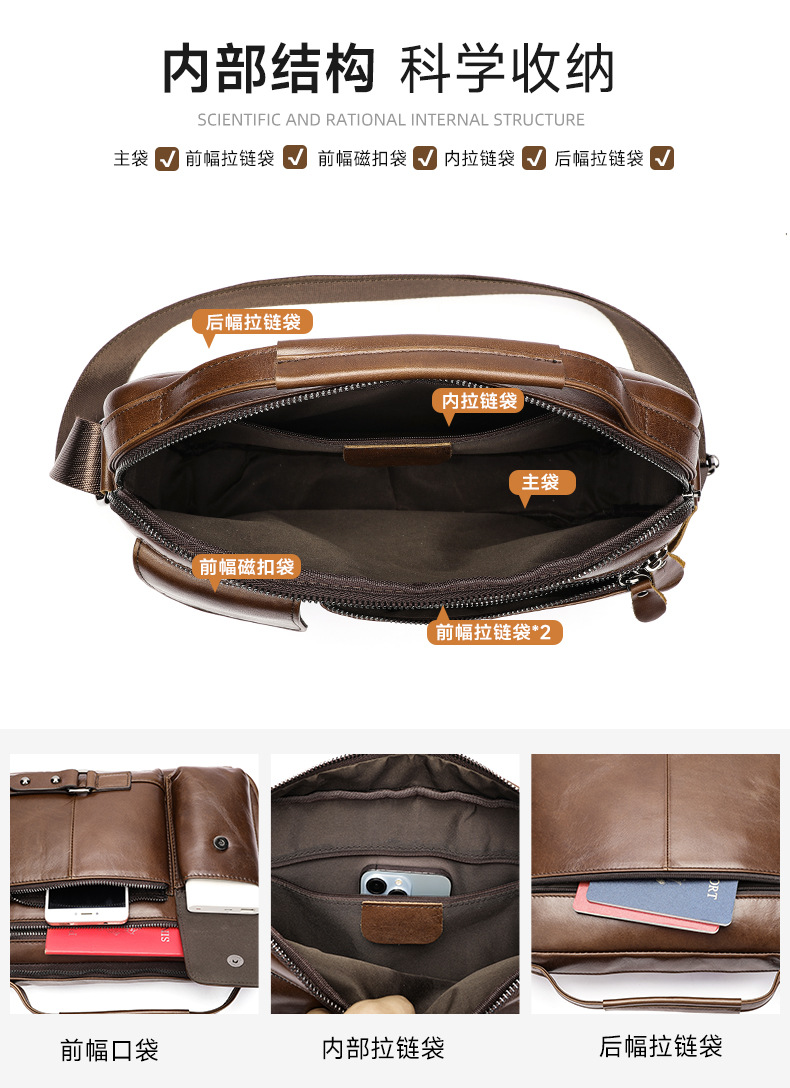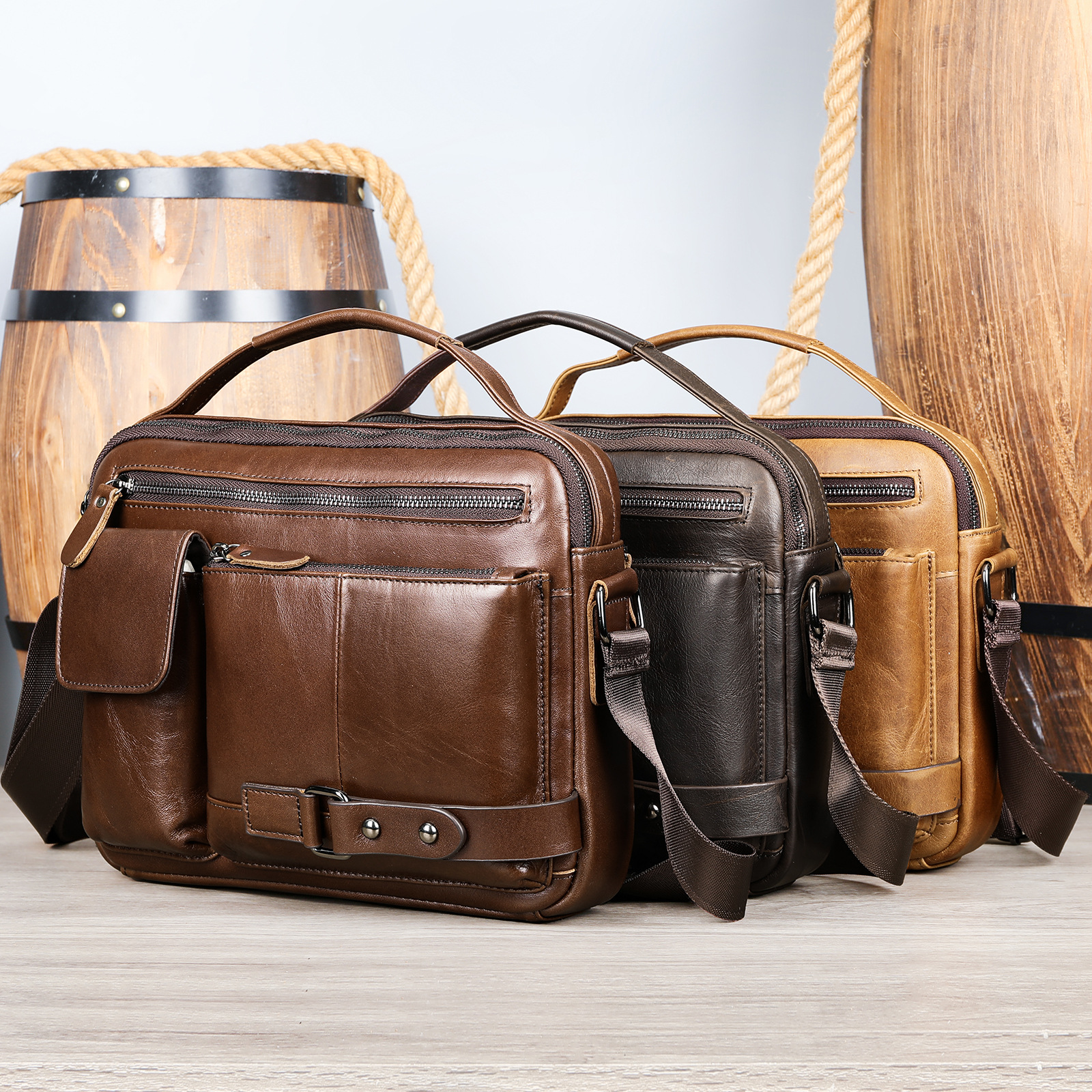 Chiếc túi đeo chéo dành cho nam giới này mang phong cách hoài cổ, được làm từ chất liệu da bò mềm mại với vân độc đáo. Thiết kế túi có dung tích rộng rãi, giúp bạn dễ dàng sắp xếp các vật dụng cá nhân. Sản phẩm có thể đeo chéo một cách thoải mái hoặc mang tay một cách linh hoạt. Bạn chỉ cần điều chỉnh dây đeo cho vừa vặn và sử dụng hàng ngày, rất tiện lợi và phù hợp với nhiều hoàn cảnh. | Tên sản phẩm: Túi Xách Nam Chất Liệu Da Bò Phong Cách Âu Mỹ - Túi Xách Ví Nam | Mã sản phẩm: A2801 - Giá: 1.290.000đ | Mã nhà sản xuất: GUDEA-G04Hình ảnh sản phẩm