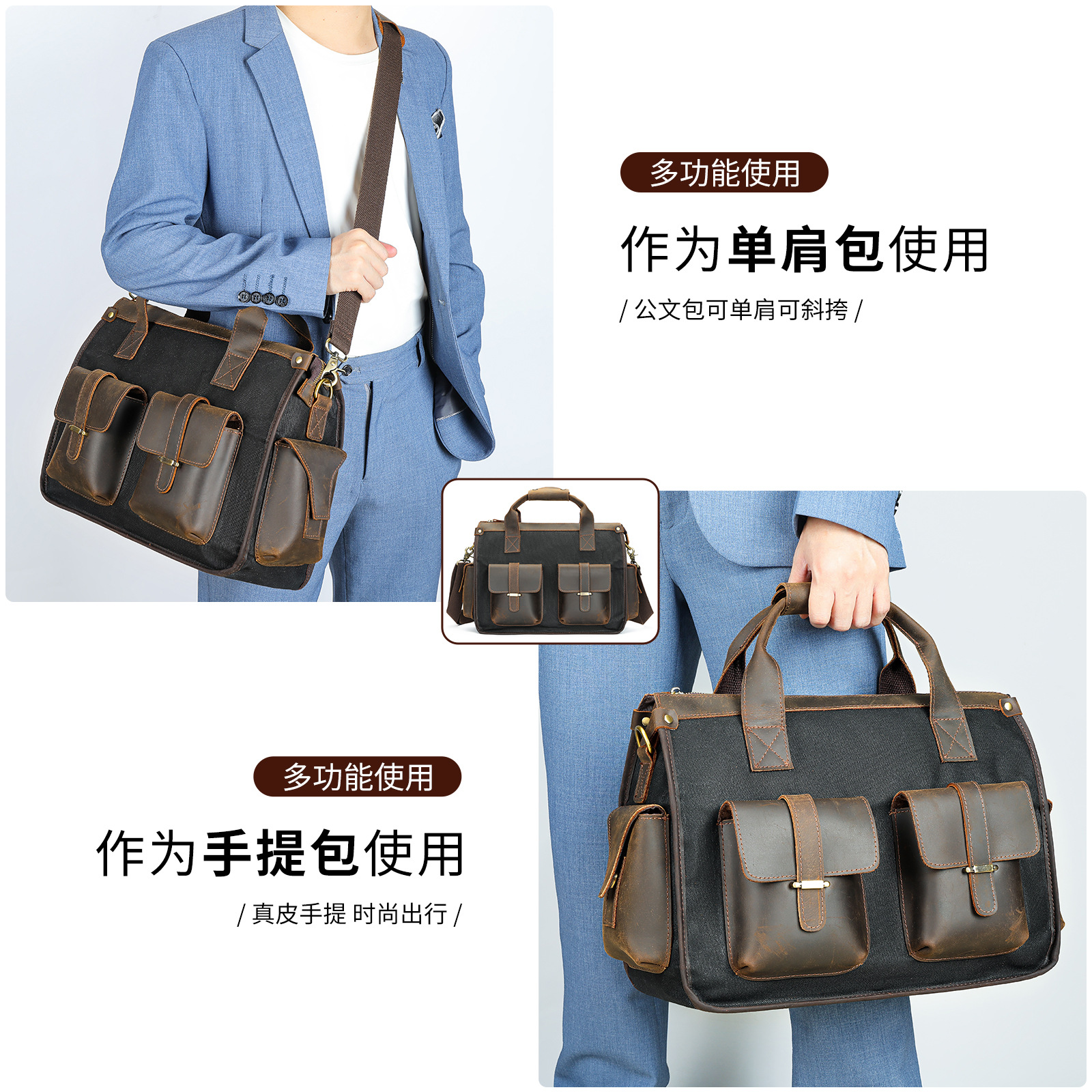 Chiếc cặp công sở dành cho nam giới, kết hợp chất liệu vải bền và da thật. Thiết kế đa năng, có ngăn riêng bảo vệ máy tính xách tay cùng nhiều ngăn nhỏ tiện lợi cho các vật dụng cá nhân. Sản phẩm có thể đeo v hoặc xách tay linh hoạt. Kiểu dáng phù hợp cho công việc và sử dụng thường ngày. Chỉ cần sắp xếp đồ đạc vào các ngăn được phân chia rõ ràng và sử dụng như ý muốn. | Tên sản phẩm: Túi Xách Nam Chất Liệu Vải Thô Túi Đựng Máy Tính - Túi Xách Ví Nam | Mã sản phẩm: A2804 - Giá: 2.290.000đ | Mã nhà sản xuất: GUDEA-G05Hình ảnh sản phẩm