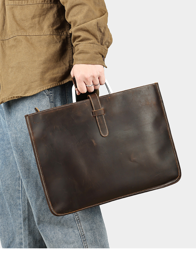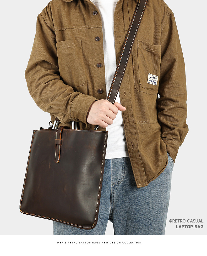 Chiếc túi xách tay nam này được làm từ chất liệu da bò nguyên miếng, có vân tự nhiên và độ bền cao. Phong cách thiết kế mang nét cổ điển, phù hợp cho việc sử dụng hằng ngày hoặc khi đi làm. Túi có qu đeo v và cũng có thể mang trên tay, rất tiện lợi. Bên trong rộng rãi, đựng vừa máy tính xách tay, tài liệu và các vật dụng cá nhân khác. Bạn chỉ cần cho đồ vào và đeo lên là có thể sử dụng ngay. | Tên sản phẩm: Túi Xách Nam Chất Liệu Da Bò Phong Cách Âu Mỹ - Túi Xách Ví Nam | Mã sản phẩm: A2820 - Giá: 1.490.000đ | Mã nhà sản xuất: GUDEA-G04Hình ảnh sản phẩm