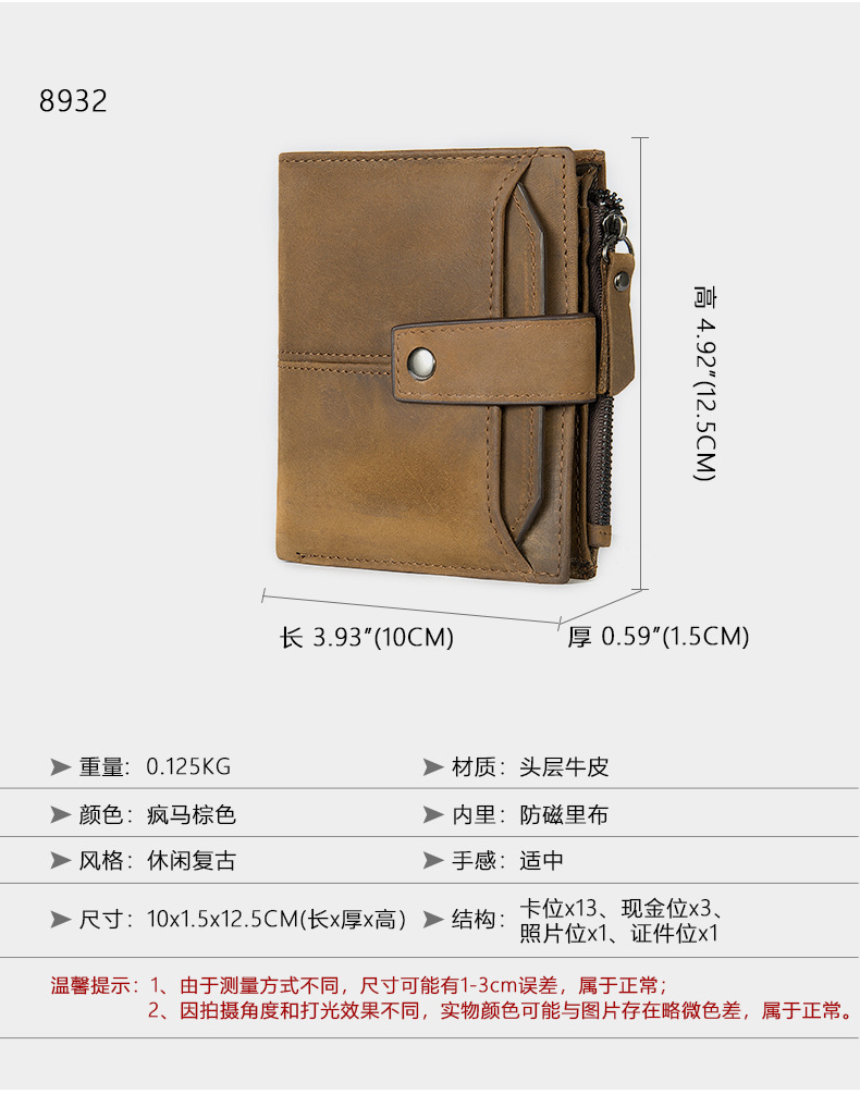 Ví da bò này có bề mặt tạo hiệu ứng vân tự nhiên, mang phong cách cổ điển. Sản phẩm được làm từ lớp da thật đầu tiên, bền chắc theo thời gian. Thiết kế dạng ví cầm tay nhỏ gọn, có nhiều ngăn đựng tiền xu, thẻ và giấy tờ cá nhân. Bạn có thể dùng để đựng các vật dụng cần thiết hàng ngày khi đi chơi hoặc làm việc. Cách sử dụng đơn giản, chỉ cần mở khóa kéo là lấy được đồ bên trong. | Tên sản phẩm: Ví Bóp Nam Chất Liệu Da Bò Phục Cổ Cổ Điển - Túi Xách Ví Nam | Mã sản phẩm: A2830 - Giá: 650.000đ | Mã nhà sản xuất: GUDEA-G02Hình ảnh sản phẩm