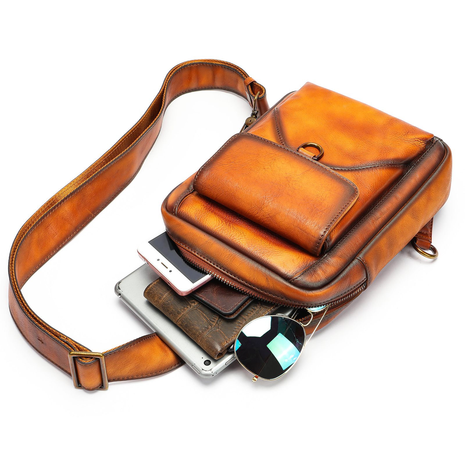Chiếc túi đeo chéo dành cho nam, được làm từ chất liệu da bò tự nhiên nguyên tấm, mang đến độ bền và vẻ đẹp theo thời gian. Kiểu dáng cổ điển phù hợp cho các dịp đi chơi, dạo phố hàng ngày. Bạn có thể đeo vắt chéo qua người một cách dễ dàng. Ngăn chứa chính rộng rãi, thuận tiện cho việc đựng ví, điện thoại và các vật dụng cá nhân thiết yếu. | Tên sản phẩm: Túi Đeo Vai Nam Chất Liệu Da Bò Phục Cổ Cổ Điển - Túi Xách Ví Nam | Mã sản phẩm: A2832 - Giá: 2.020.000đ | Mã nhà sản xuất: GUDEA-G05Hình ảnh sản phẩm