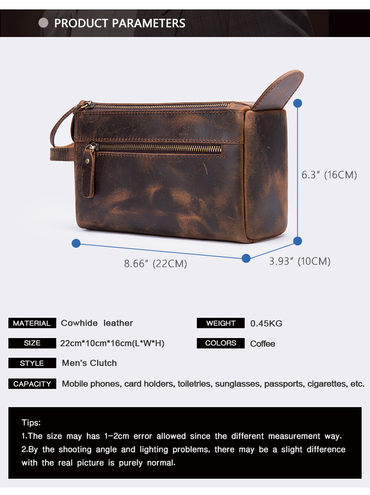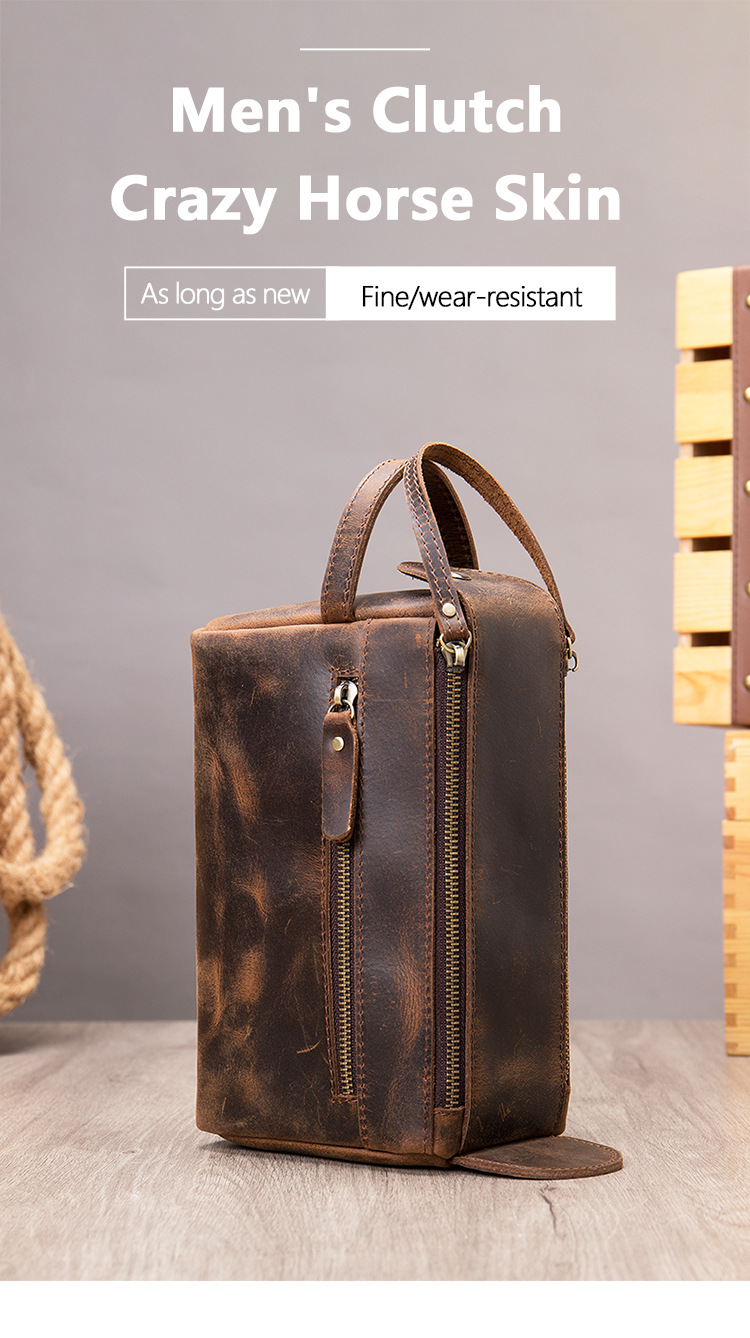 Chiếc túi cầm tay nam này được làm từ chất liệu da thật lấy từ lớp da bên ngoài, mang đến độ bền và cảm giác mềm mại. Thiết kế dung tích lớn, rất tiện lợi để đựng các vật dụng cá nhân thường ngày. Kiểu dáng phù hợp cho cả công việc và sinh hoạt thông thường. Bạn có thể cầm tay hoặc xách một cách thoải mái. Sử dụng đơn giản, chỉ cần cho đồ dùng vào và đóng khóa kéo lại. | Tên sản phẩm: Ví Bóp Cầm Tay Nam Chất Liệu Da Bò - Túi Xách Ví Nam | Mã sản phẩm: A2850 - Giá: 1.170.000đ | Mã nhà sản xuất: GUDEA-G04Hình ảnh sản phẩm
