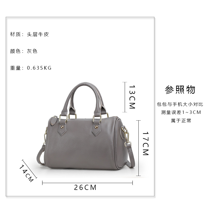 Túi xách tay thiết kế kiểu dáng Boston nhỏ gọn, phù hợp cho phái nữ. Sản phẩm được làm từ chất liệu da thật tự nhiên, bề mặt mềm mịn và có độ bền tốt. Màu xám thời thượng dễ dàng phối hợp với nhiều trang phục khác nhau. Bạn có thể xách tay hoặc mang làm túi đeo chéo một cách linh hoạt. Sử dụng hàng ngày và vệ sinh nhẹ nhàng bằng khăn mềm để giữ túi luôn đẹp. | Tên sản phẩm: Túi Xách Nữ Chất Liệu Da Bò - Túi Ví Nữ | Mã sản phẩm: A2883 - Giá: 1.250.000đ | Mã nhà sản xuất: GUDHI-G04