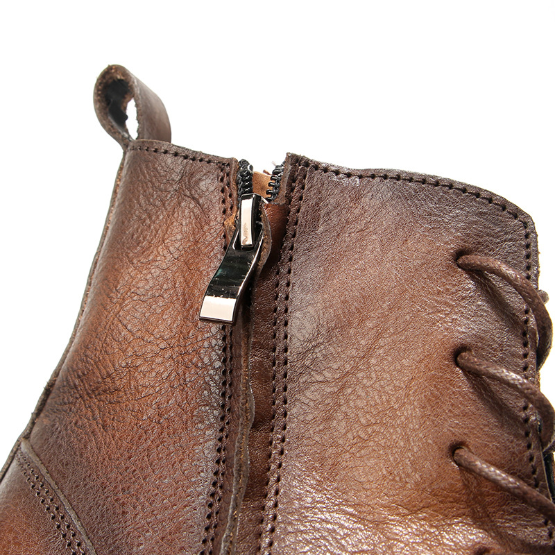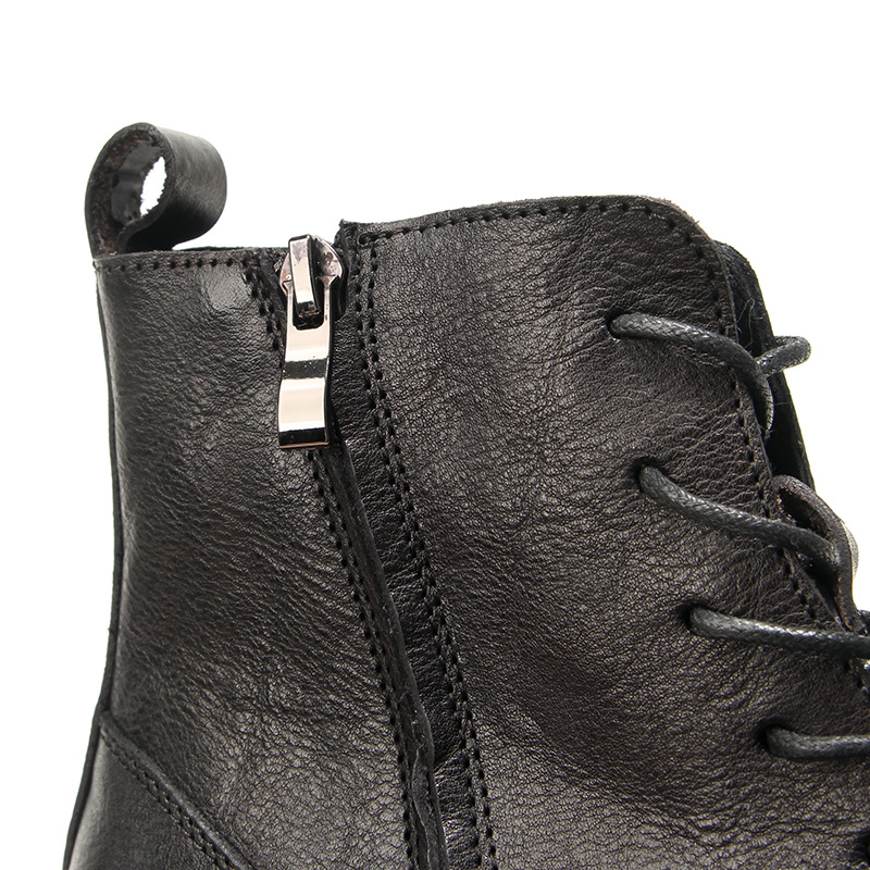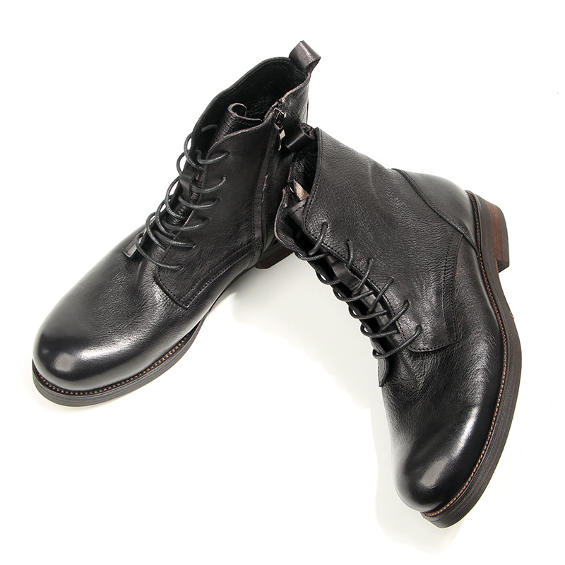 Giày bốt cổ cao này mang phong cách cổ điển, được làm từ chất liệu da bò mềm mại bền đẹp. Sản phẩm có thiết kế khóa kéo tiện lợi bên hông, giúp bạn mang vào hay tháo ra dễ dàng. Kiểu dáng mang nét đẹp xưa cũ có chủ đạo, phù hợp để phối cùng nhiều loại trang phục khác nhau. Bạn có thể sử dụng hàng ngày, lau sạch bụi bám trên bề mặt da bằng vải mềm để giữ giày luôn sạch đẹp. | Tên sản phẩm: Giày Boot Martin Nam Chất Liệu Da Bò Phục Cổ Cổ Điển - Giày Dép Nam | Mã sản phẩm: A2914 - Giá: 2.210.000đ | Mã nhà sản xuất: WODAR-G05Hình ảnh sản phẩm
