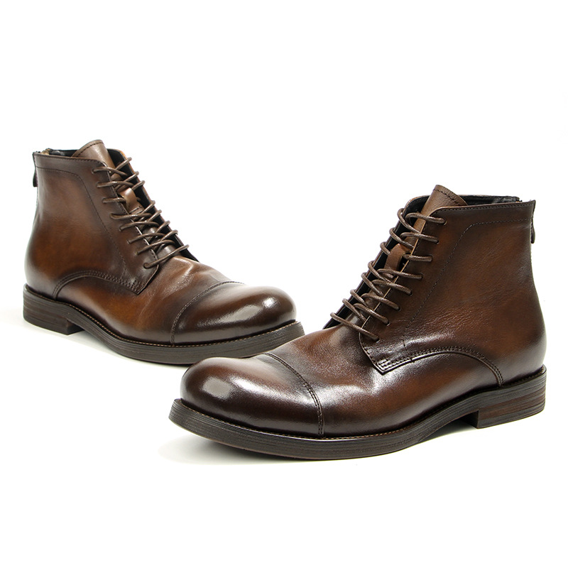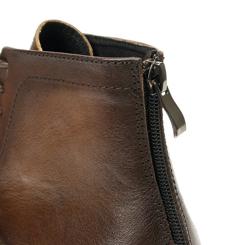 Đôi bốt da này mang phong cách cổ điển châu Âu, được làm hoàn toàn từ chất liệu da thật. Kiểu dáng bốt có khóa kéo bên hông giúp mang vào và tháo ra dễ dàng. Màu da được đánh bóng thủ công tạo hiệu ứng trông có vẻ cũ một cách tự nhiên, phù hợp với vẻ ngoài nam tính và mạnh mẽ. Sản phẩm phù hợp để phối cùng quần jeans hoặc quần vải trong nhiều dịp khác nhau. | Tên sản phẩm: Giày Boot Martin Nam Chất Liệu Da Bò Phục Cổ Cổ Điển - Giày Dép Nam | Mã sản phẩm: A2928 - Giá: 2.310.000đ | Mã nhà sản xuất: WODAR-G05Hình ảnh sản phẩm