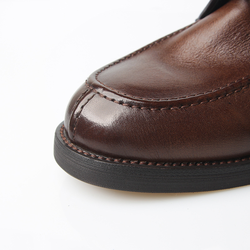 Giày nam phong cách thư giãn, mang nét đẹp cổ điển với kiểu dáng đầu giày vuông vức. Sản phẩm được làm từ chất liệu da bò tự nhiên, bề mặt được xử lý rửa nước và phối màu cẩn thận, tạo nên vẻ ngoài độc đáo như đã qua sử dụng. Kiểu dáng này dễ dàng phối cùng nhiều loại trang phục khác nhau. Sử dụng hàng ngày và vệ sinh nhẹ nhàng bằng các sản phẩm chuyên dụng cho đồ da. | Tên sản phẩm: Giày Da Nam Chất Liệu Da Bò Phục Cổ Cổ Điển - Giày Dép Nam | Mã sản phẩm: A2965 - Giá: 2.120.000đ | Mã nhà sản xuất: WODAR-G05Hình ảnh sản phẩm