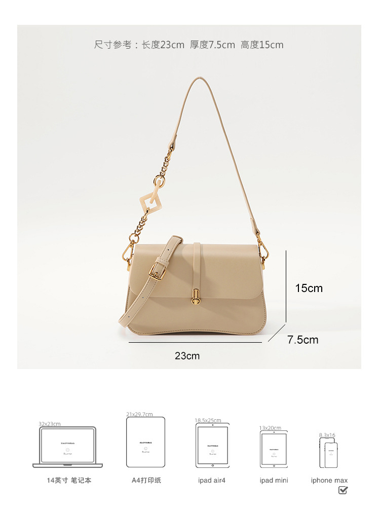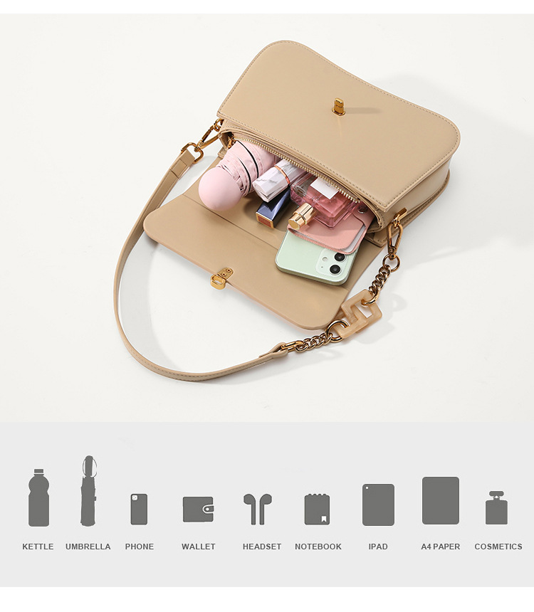 Túi xách thiết kế theo phong cách Pháp, có màu nâu nhạt dịu nhẹ như màu trà sữa, rất dễ phối đồ. Kiểu dáng túi đeo dưới cánh tay hoặc khoác chéo tiện lợi, phù hợp cho nhiều dịp sử dụng hằng ngày. Túi có kích thước vừa phải, đựng vừa các vật dụng cá nhân cần thiết như điện thoại, ví và chìa khóa. Chất liệu bền nhẹ, đường may tinh tế và tỉ mỉ. Có thể điều chỉnh dây đeo để đeo theo cách ưa thích. | Tên sản phẩm: Túi Xách Nữ - Túi Ví Nữ | Mã sản phẩm: A3008 - Giá: 950.000đ | Mã nhà sản xuất: GUDTH-G03Hình ảnh sản phẩm