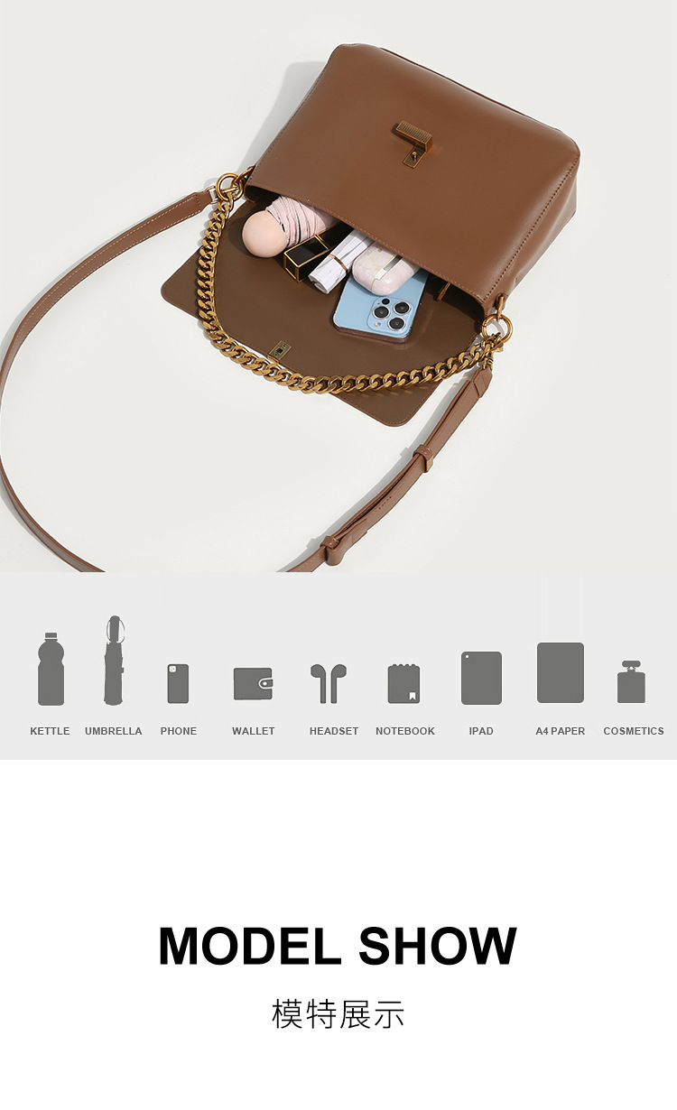 Chiếc túi mang phong cách cổ điển nhẹ nhàng, thiết kế đơn giản và dễ phối đồ. Túi có sức chứa lớn, phù hợp cho những ngày thu đông. Dây đeo làm từ mắt xích kim loại có thể điều chỉnh, vừa đeo v vừa khoác chéo linh hoạt. Kiểu dáng túi hộp đứng giúp sắp xếp đồ gọn gàng. Sử dụng hàng ngày để đựly vừa đủ các vật dụng cá nhân như ví, điện thoại, chìa khóa và một số món đồ nhỏ. | Tên sản phẩm: Túi Đeo Vai Nữ Hàng Mùa Xuân Thu Đông Phục Cổ Cổ Điển - Túi Ví Nữ | Mã sản phẩm: A3046 - Giá: 990.000đ | Mã nhà sản xuất: GUDTH-G03Hình ảnh sản phẩm