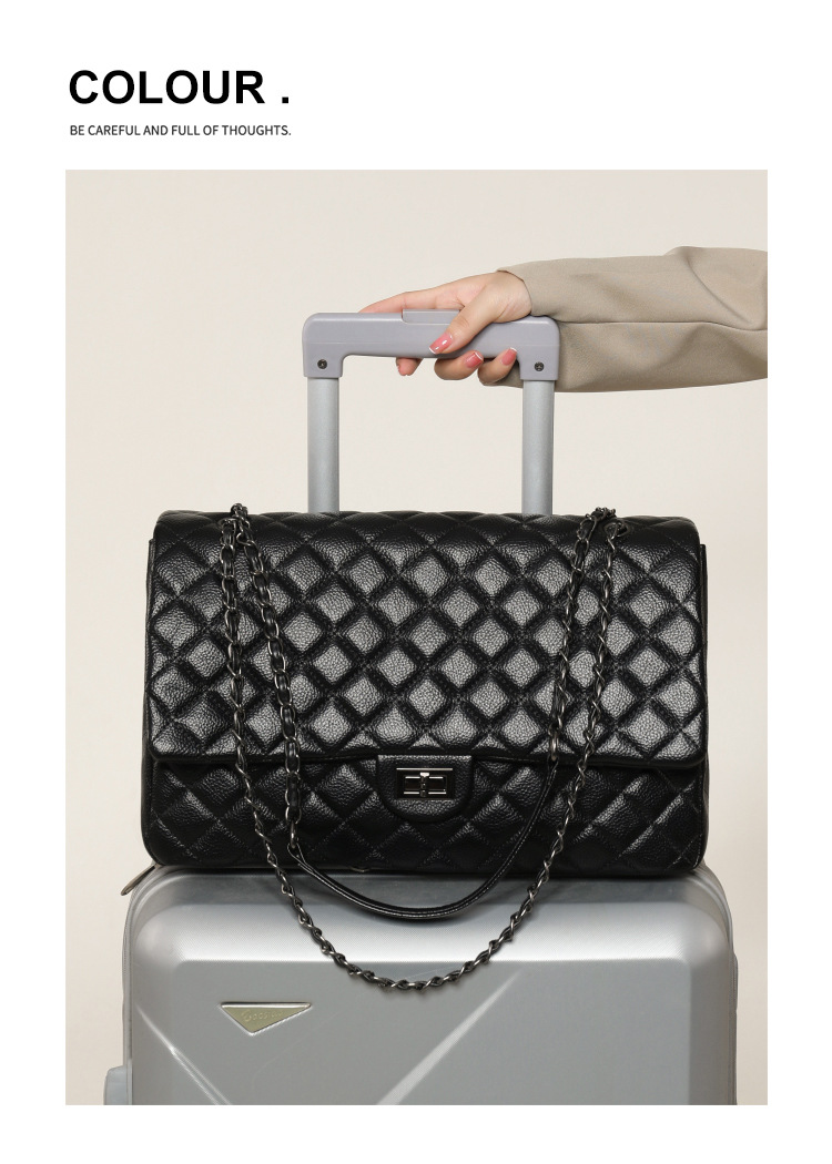 Túi xách này có kiểu dáng đơn giản nhưng vẫn rất thời trang. Thiết kế dáng đeo chéo tiện lợi, kèm theo dây xích chắc chắn. Bên trong túi rất rộng rãi, dễ dàng đựng đầy đủ các vật dụng cần thiết cho cả gia đình khi ra ngoài hoặc đi chơi xa. Bề mặt túi được tạo hình ô lồng đặc trưng, tăng thêm phần sinh động. Bạn có thể dùng như túi đựng đồ hàng ngày hoặc mang theo trong những chuyến du lịch ngắn ngày. | Tên sản phẩm: Túi Xách Nữ Kẻ Caro Kẻ Caro - Túi Ví Nữ | Mã sản phẩm: A3050 - Giá: 880.000đ | Mã nhà sản xuất: GUDTH-G03Hình ảnh sản phẩm